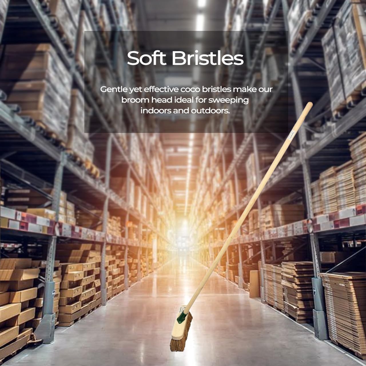 12" inch Natural Soft Coco Sweeping Broom with Wooden Handle Soft Bristle Sweeping Brush Ideal for Indoors and Outdoors Durable Home, Garage, Patio, Yard & Garden Broom