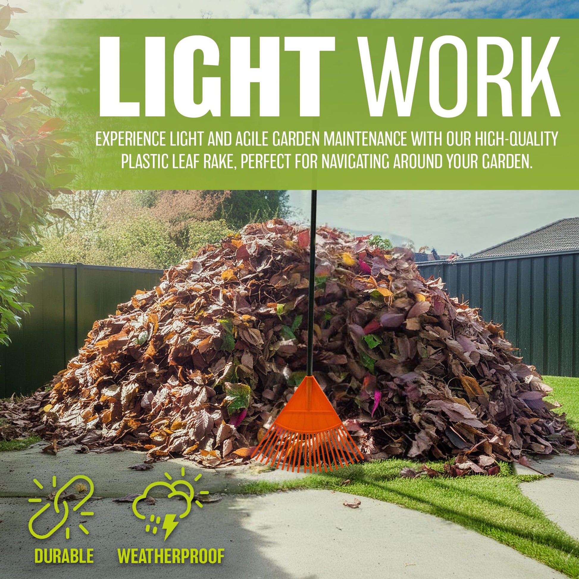 - ✅ HIGH QUALITY - This plastic leaf rake is very light and manoeuvrable around your garden and in between your car and curb where leaves tend to collect. The plastic heads are solid and close enough that leaves don’t get stuck.