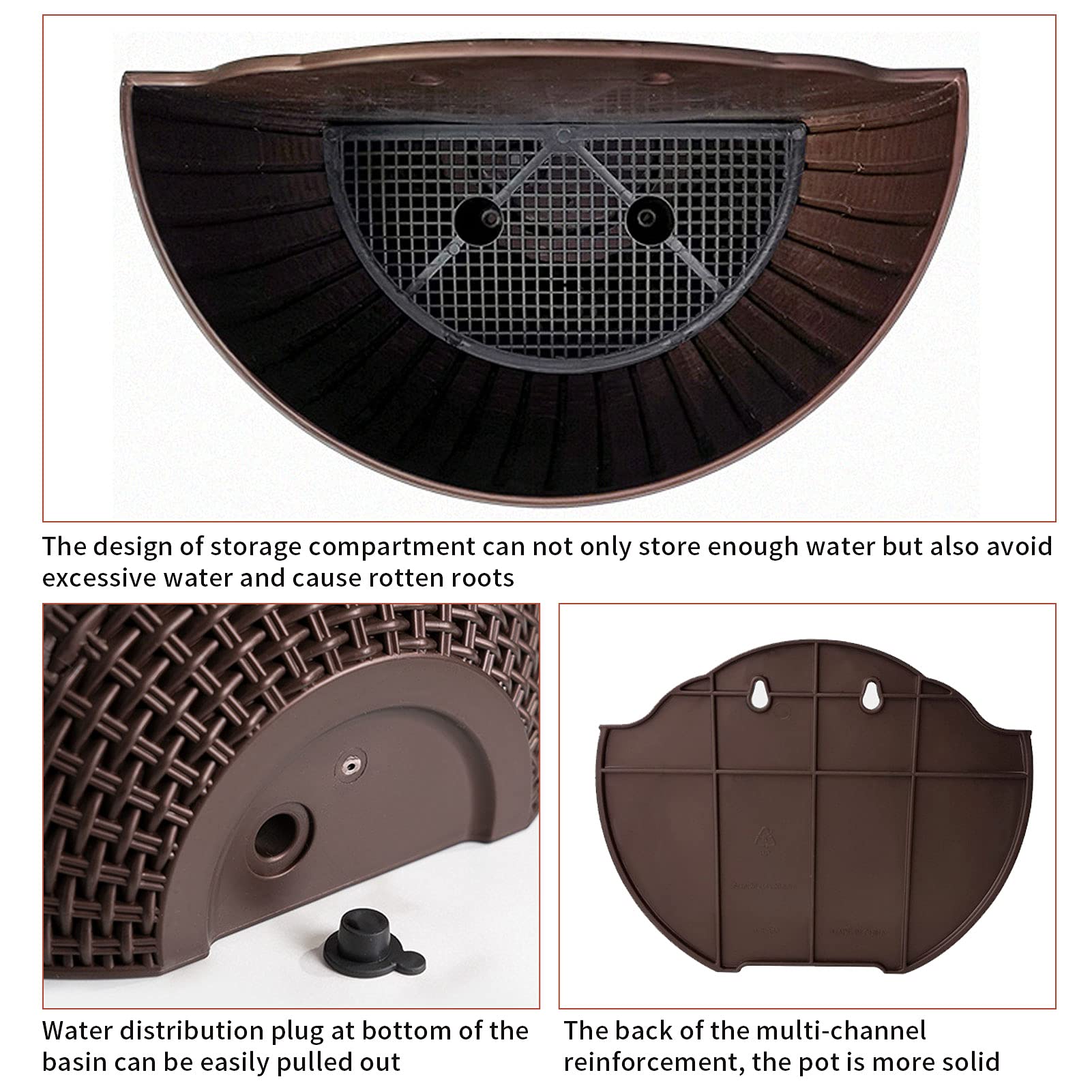 - đ¸ăWidely UsedăThe hanging planters outdoor with imitation rattan surface looks natural and elegant, and the semicircle can fit to the wall perfectly. It can be planted different kinds of plants, such as succulent, hanging plant, herb, flower, etc. Ideal for living room, garden, balcony, fence, patio and so on.