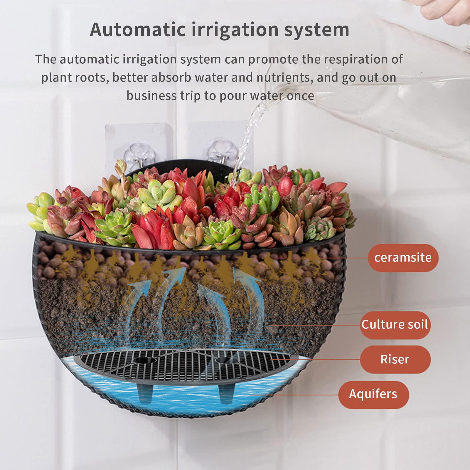 - đ¸ăDrainage DesignăThe wall mounted planter adopts the water storage compartment design, each flower pot has a partition and drain hole to promote plants breathing and growth. It can make sure the enough water in a few days, and the drain hole can open anytime to drain excess water to prevent root rot.