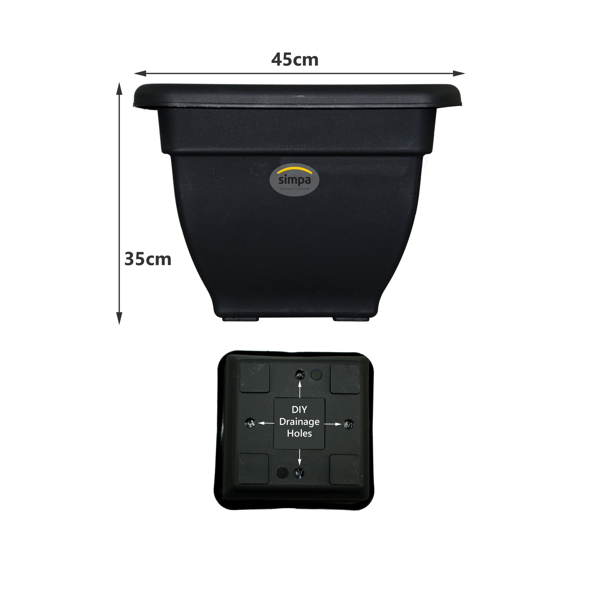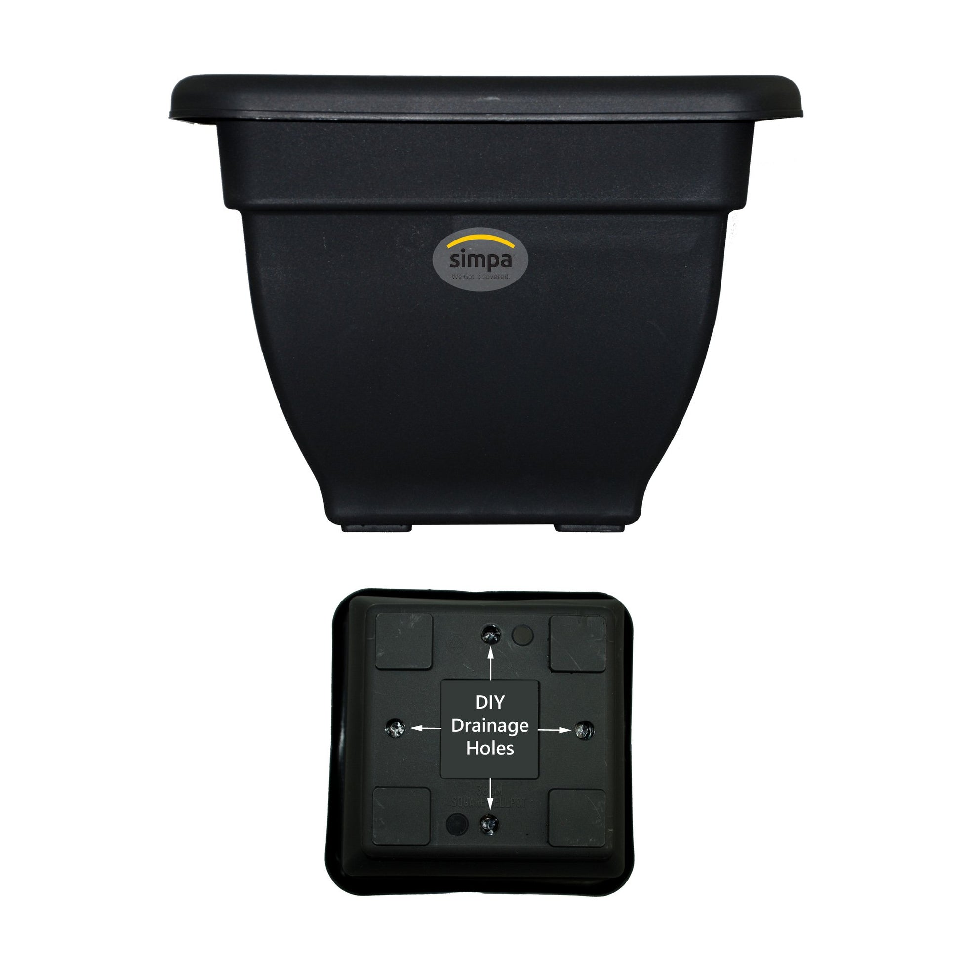 - The Simpa Matt Black Heavy Duty Plastic Square Planter will be an attractive and stylish addition to your home.