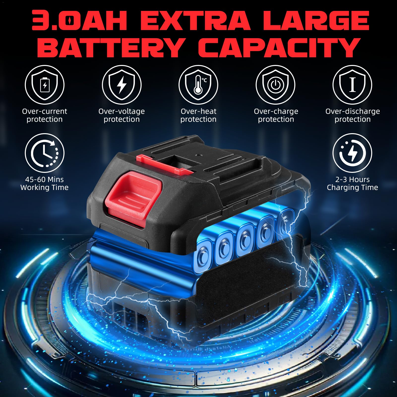 - 【What's included in the package】This cordless electric chain saw includes battery*1, charger*1, saw chains*2, guide bar*1, socket wrench*1. Chain type: anti-kickback. If you have any questions, please contact us
