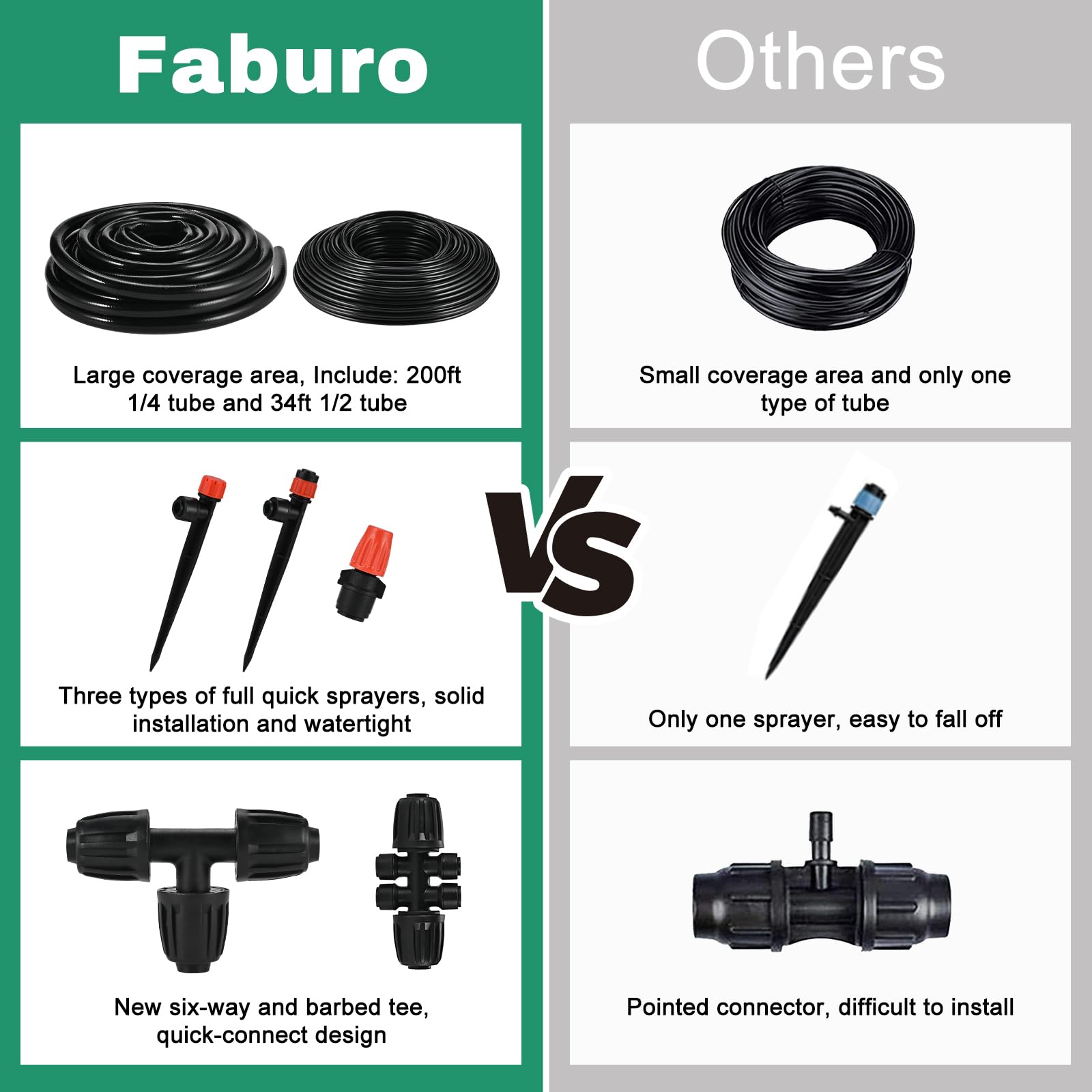 234FT/71M Irrigation System Kit, Faburo Quick Connector Automatic Garden Watering System for Outdoor Plants, 1/4'' - 1/2'' Tubing DIY Greenhouse Drip Irrigation Kit for Lawn, Flower Beds, Patio