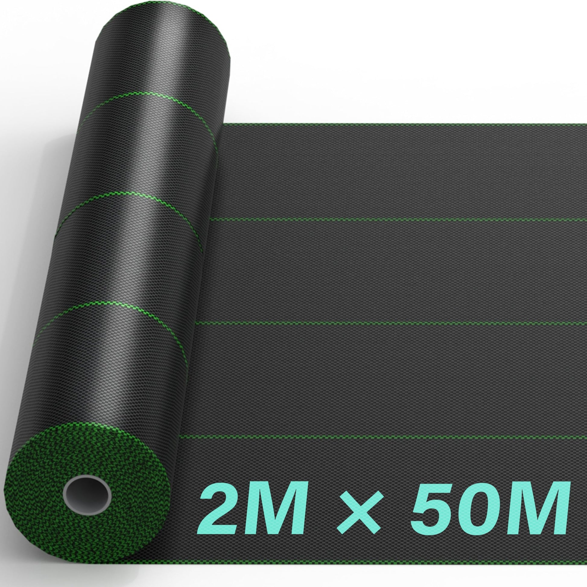 2mx50m Heavy Duty Weed Control Membrane Garden Weed Barrier Fabric for Landscaping Driveway Gravel Artificial Grass Lawn Underlay Woven Roll Ground Cover Weed Block Patios, Garden, Flower Beds Black