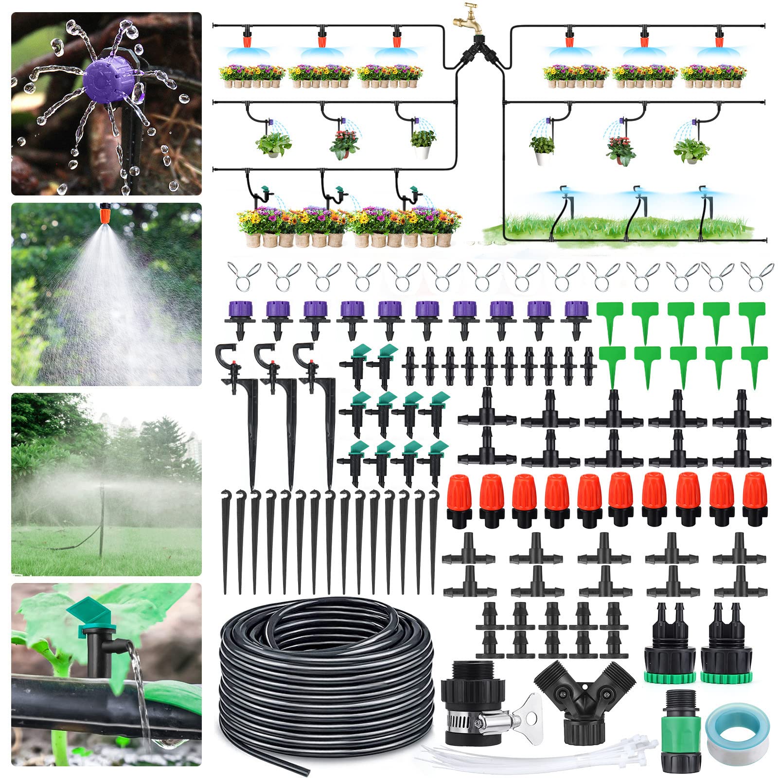 - 💧Easy Installation& 173Pcs💧 173Pcs drip irrigation kit is easy to install without digging pipes. The nozzles have two water outlet modes: columnar and mist, and each nozzle can be adjusted individually to meet the water needs of different plants. There are many accessories, allowing you to easily DIY.