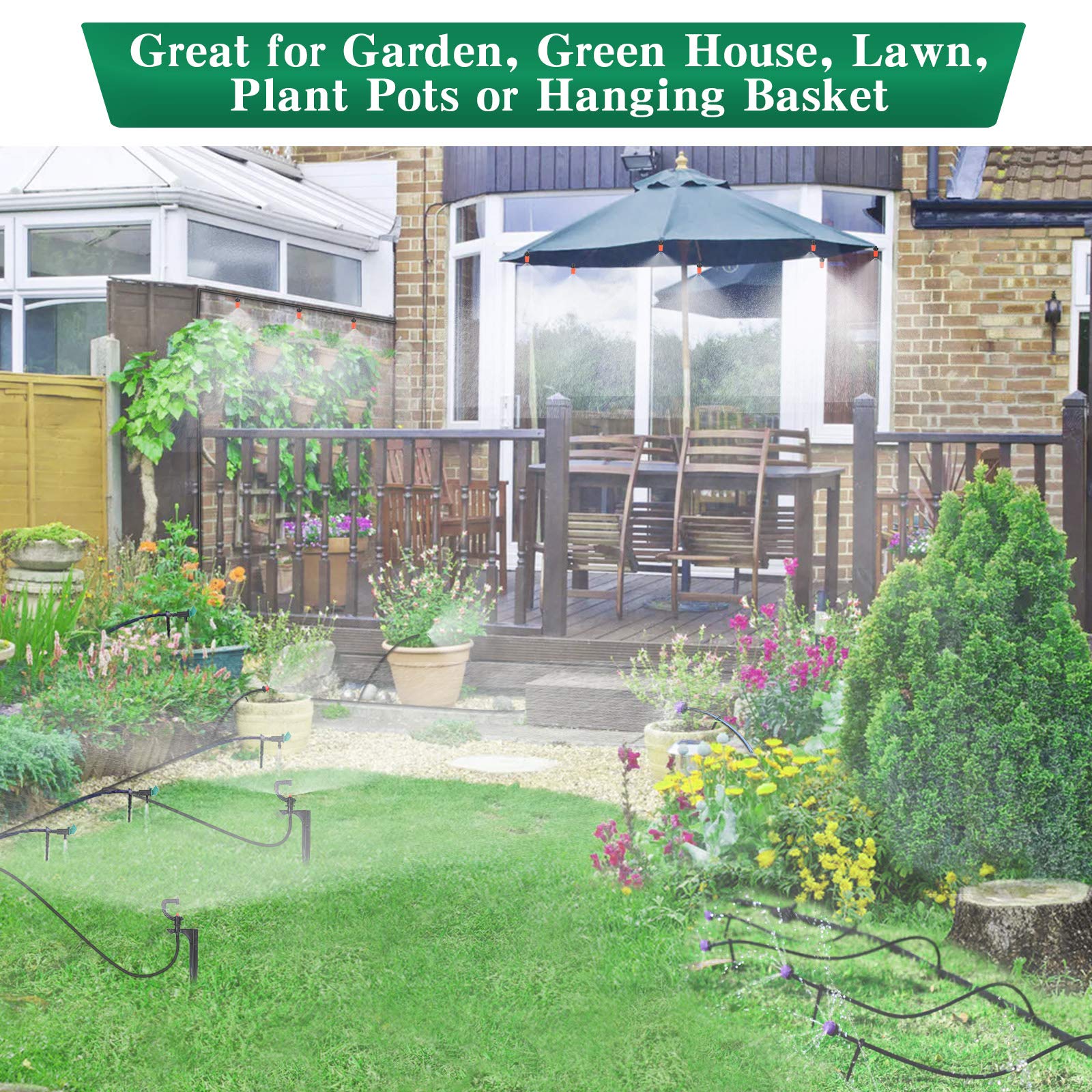 - 💧Wide Using💧 Automatic irrigation kit is great for atomization, lawn irrigation, patios, gardens, vegetable irrigation, roof cooling, irrigation ,agriculture, vegetable, greenhouse, flower bed, swimming pool misting fog cooling irrigation etc.Effective external cooling and real atomizing effect,which is suitable for trampoline use for summer fun. If there are frequent tube burst problems and dripper ejection, it is recommended to reduce your water pressure to make the product work better.