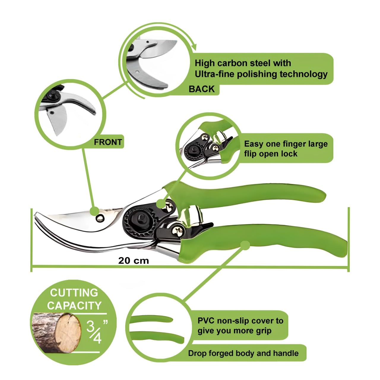 - EXCELLENT CUTTING CAPACIY : The garden shears set is made with high carbon precision-ground steel blades, easily solve your toughest trimming work. The heavy duty loppers' blades cut with a quick chop, the pruner shear's maximum cutting capacity is up to 2cm diameter