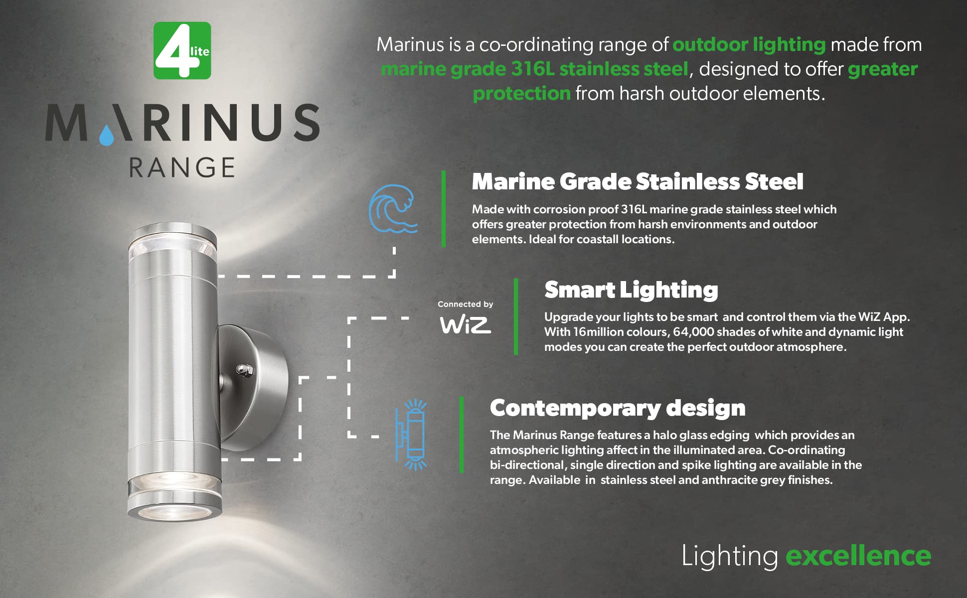 4lite Marinus Outdoor Up Down Wall Light (Stainless Steel) Rust Free IP44 Rated Motion Sensor Exterior Wall Lamp - 4L2/2306-4Yr Guarantee