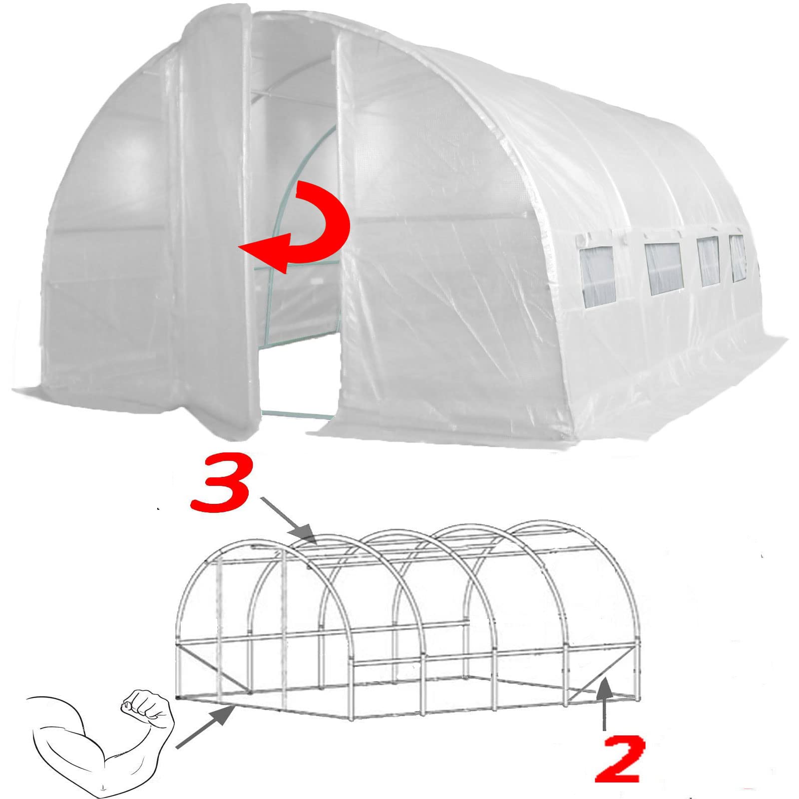4m x 3m Polytunnel "Strongest In It's Class" a fully Galvanised Structure with more Diagonal & Roof Bracing than all others. Metal Hinged Door | Rear Zippered Wide Access Door | Groundbar Kit.