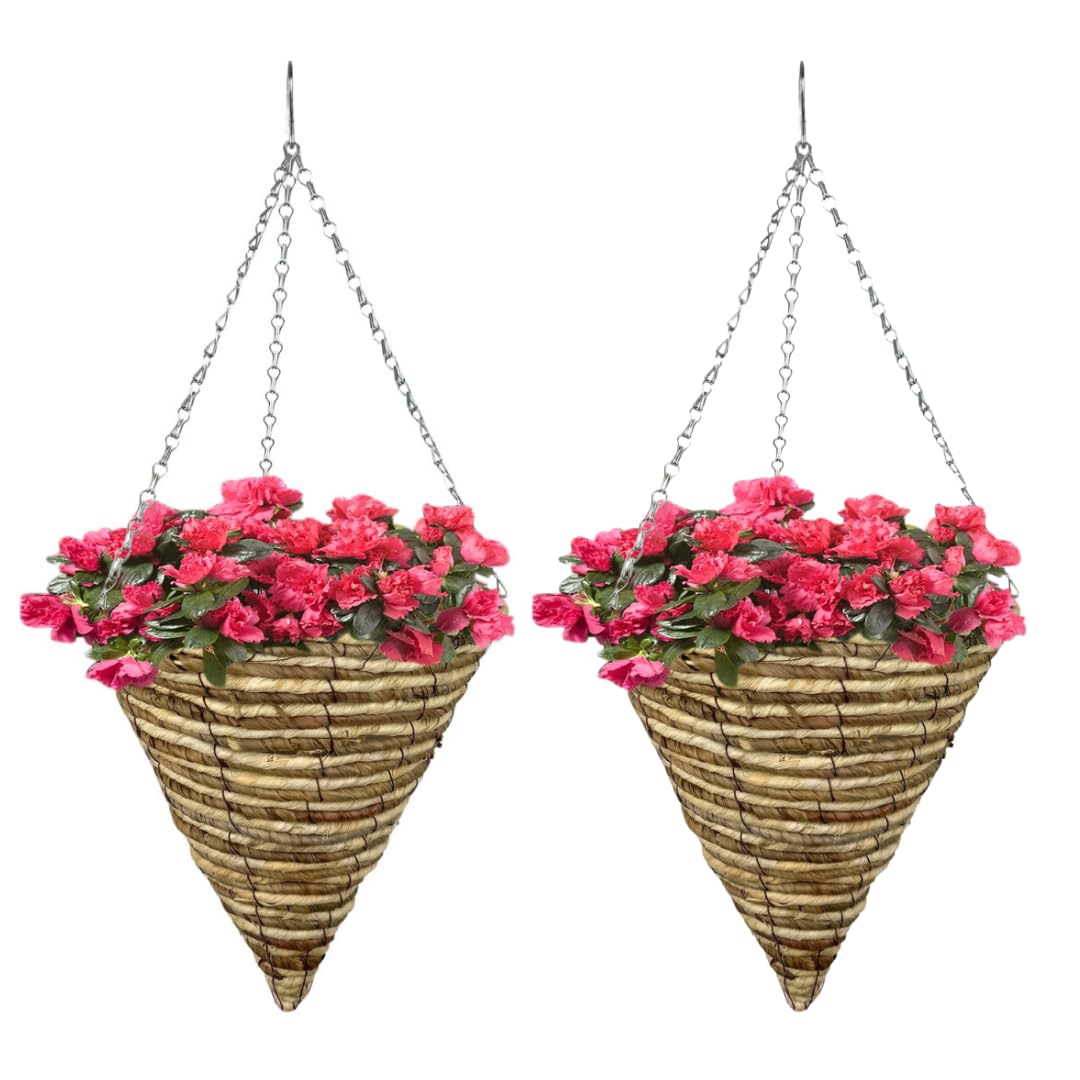 ADEPTNA Set of 2 Cone Garden Hanging Baskets 12 Inches - Natural Basket Hanging Plants Wall Flower Planter Pot with Detachable Hanging Chain for Home Garden Decoration (ROPE BASKETS)