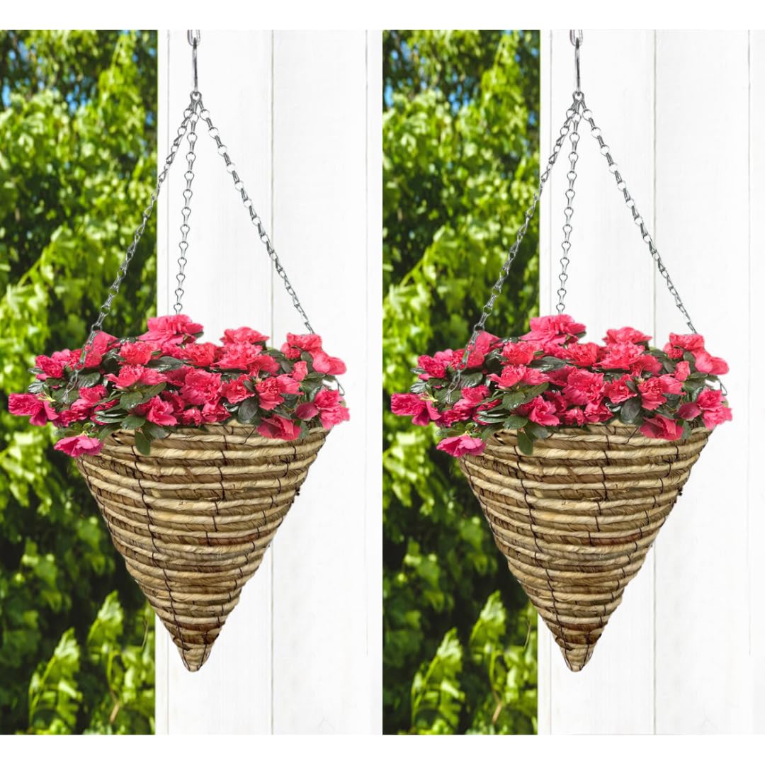 - 2 PACK ππππππ πππππππ ππππππS - Our garden hanging baskets outdoor come with a cone-shaped design. This hanging plant basket adds seasonal pop-up colour and can be hung in your front garden to welcome guests to your backyard. Elevate your indoor or outdoor dΓ©cor with the elegant conical shape of this 12" Cone Hanging Basket.