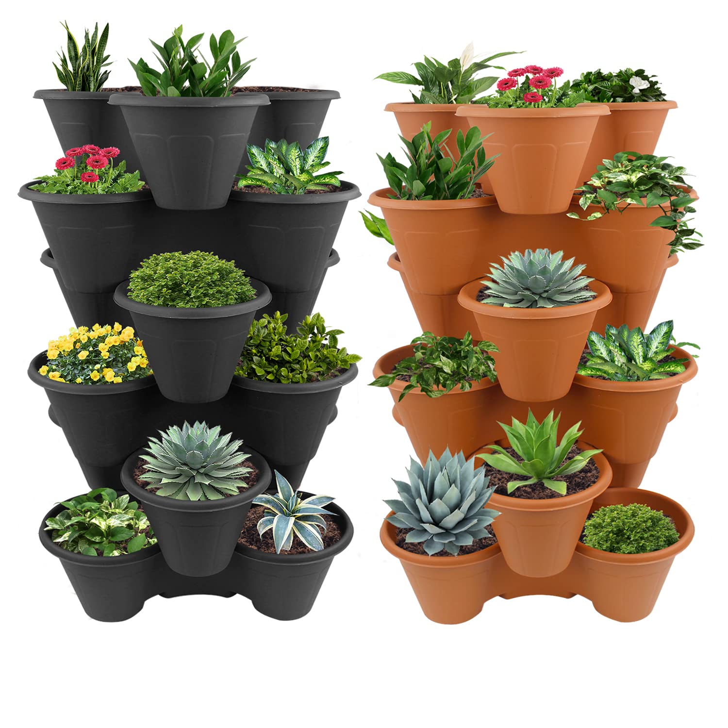 - DURABLE & WEATHER RESISTANT: Made from high-quality plastic, these tiered garden pots are sturdy, lightweight, and built to withstand outdoor conditions, ensuring long-lasting use for herbs, flowers, and vegetables.