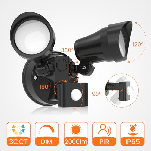 - ✅【Adjustable Design & IP65 Waterproof】The lamp head and motion sensor can be flexiably adjustable, light up your way home. IP65 waterproof rating, perfect to light up your doorway, garage, backyard, porch, entryway, stairs, shop, and garden.