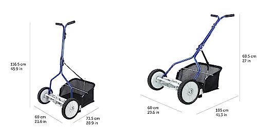 Amazon Basics Push Reel Lawn Mower, 46cm 5-blade with grass catcher, Blue