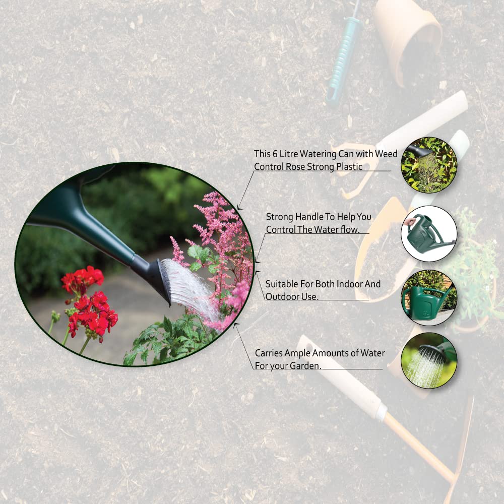 ANGIX 6L Garden Watering Can | Lightweight Can With Double Side Handles And Detachable Plastic Water Sprinkler Rose Head For Indoor and Outdoor Use (Green)
