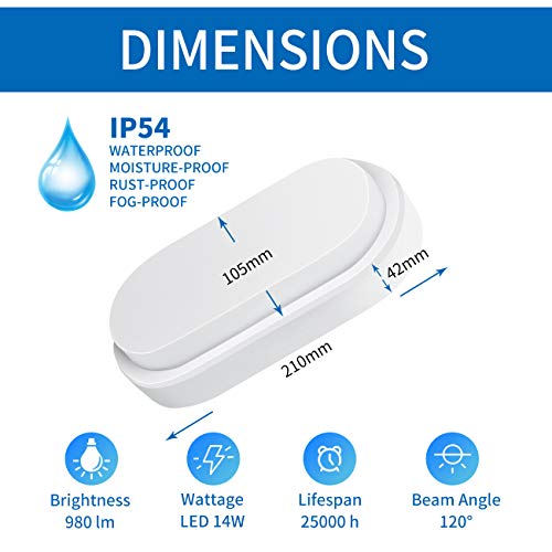 ANWIO 14W Bulkhead Light Led Outdoor,led Oval Porch Sconce Lighting,Outside Led Lights Mains Powered,Led Bulkhead Wall Light,980LM,4000K Natural White Bulkhead Light Sanwio Wall Lights(2 Pack)