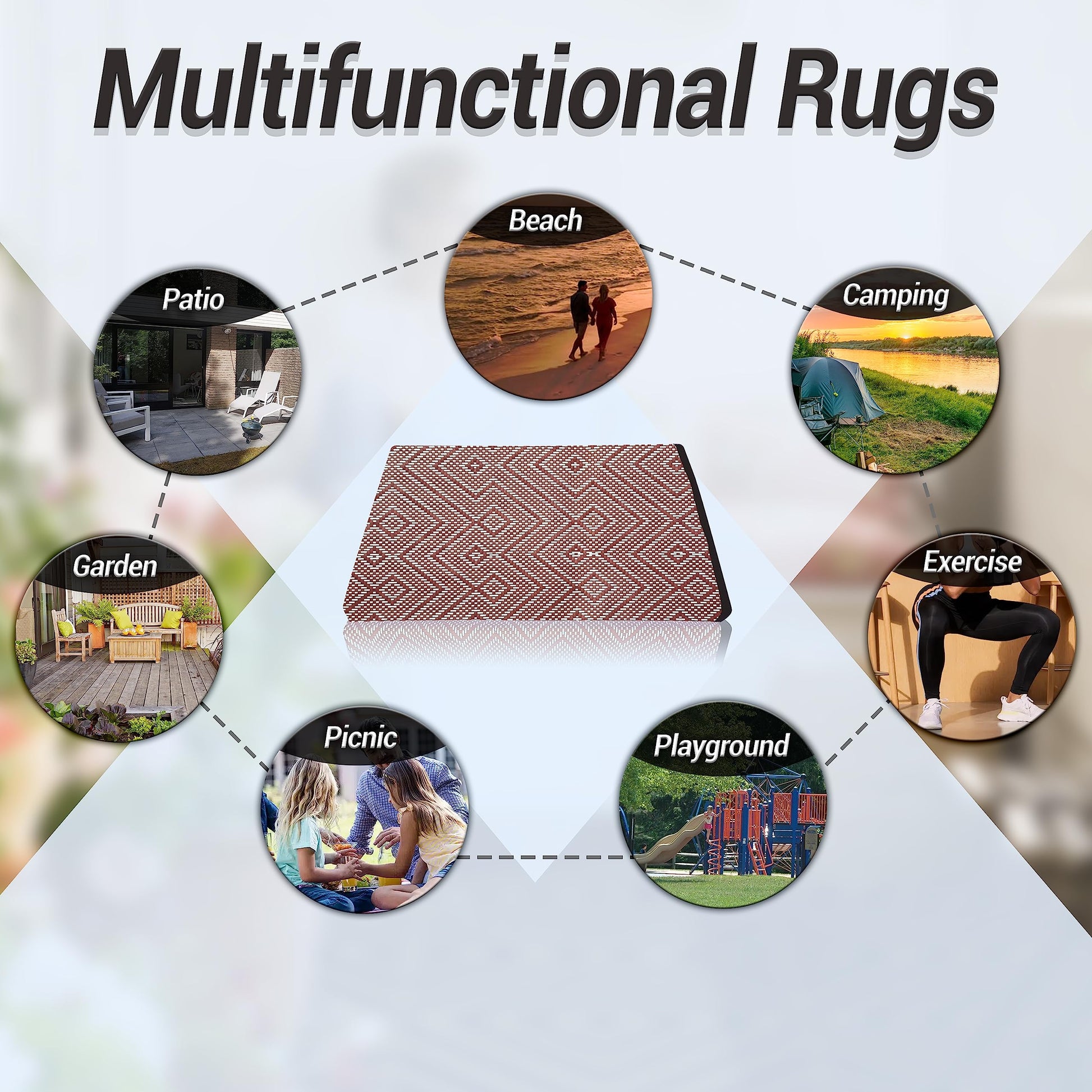- PORTABLE: Rugs are made of Plastic straw rug, Lightweight, can be rolled or folded into compact size for storage and are portable for camping or picnic