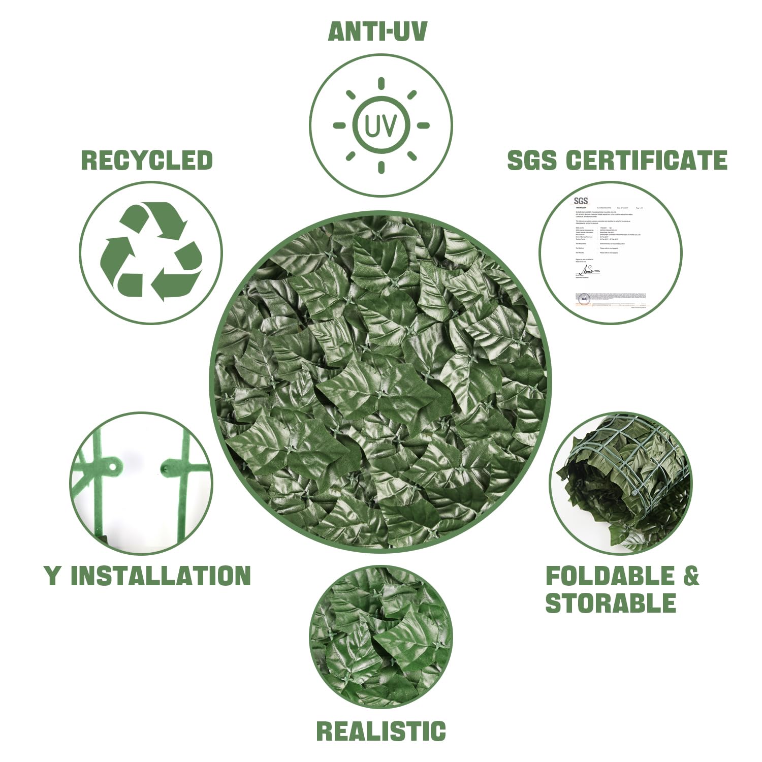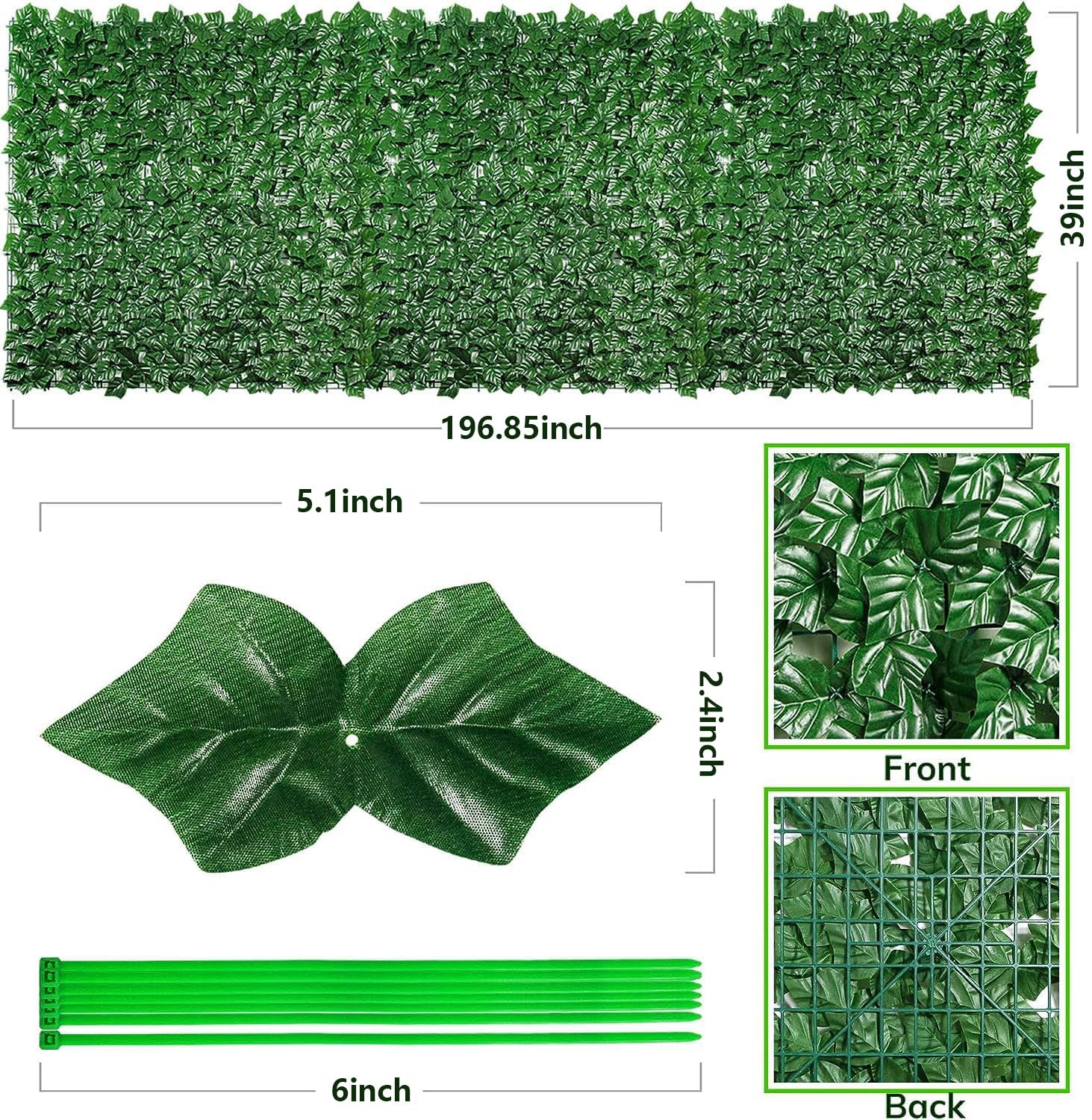 - šćRealistic Green Ivy Lookć: Privacy-100% blockage provides no see-through full privacy, covered by high density ivy and the additional mesh backing, both are strongly attached to the frame panel, significantly prevent leaves from falling.