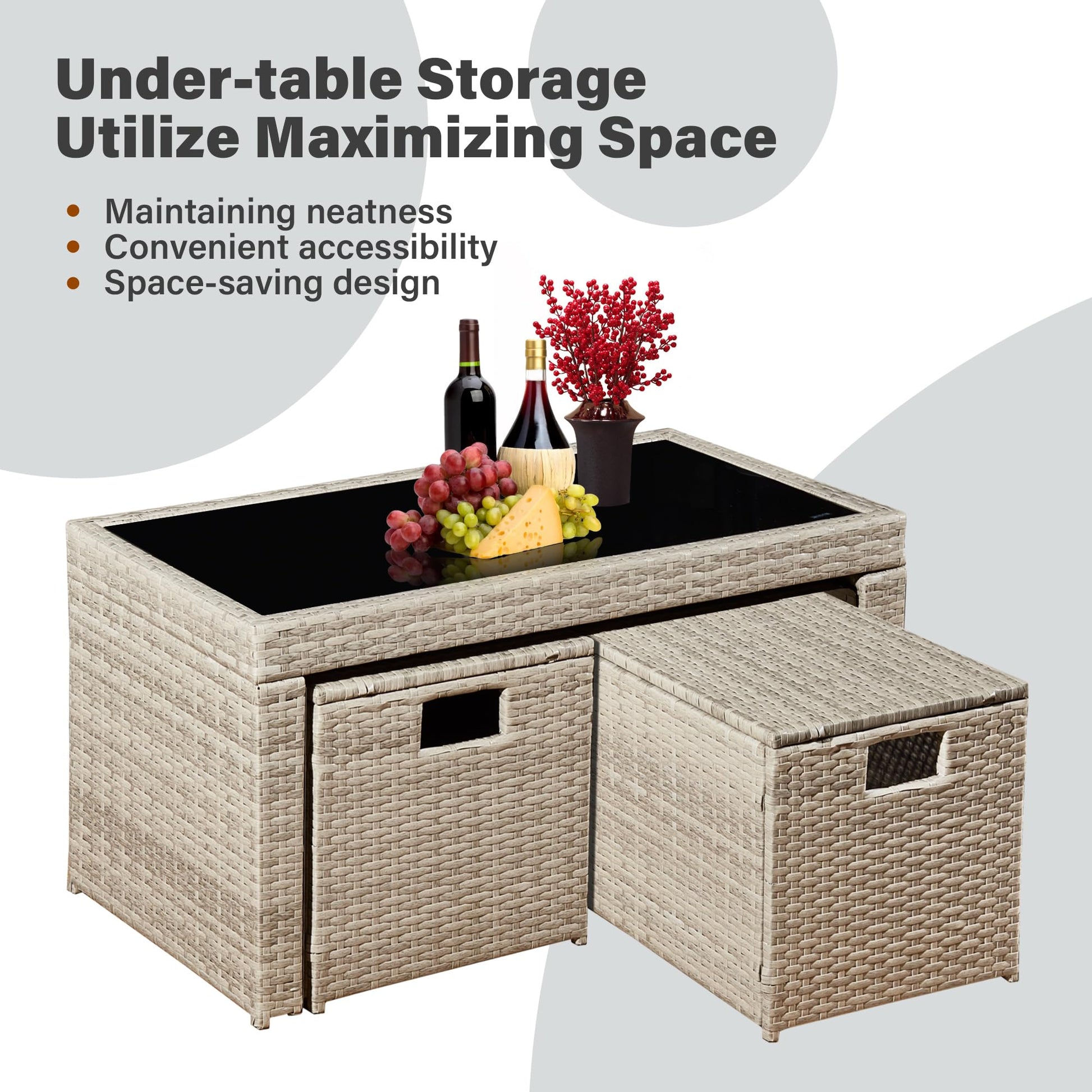 - EASY TO MAINTAIN: Our outdoor furniture is all paired with high quality cushions, the fade-resistant cushion cover with zip, quick and easy to replace, hand wash is recommended, with strong and attractive tempered glass table, if you accidentally spill coffee or milk on it, just wipe with a rag and it's as good as new