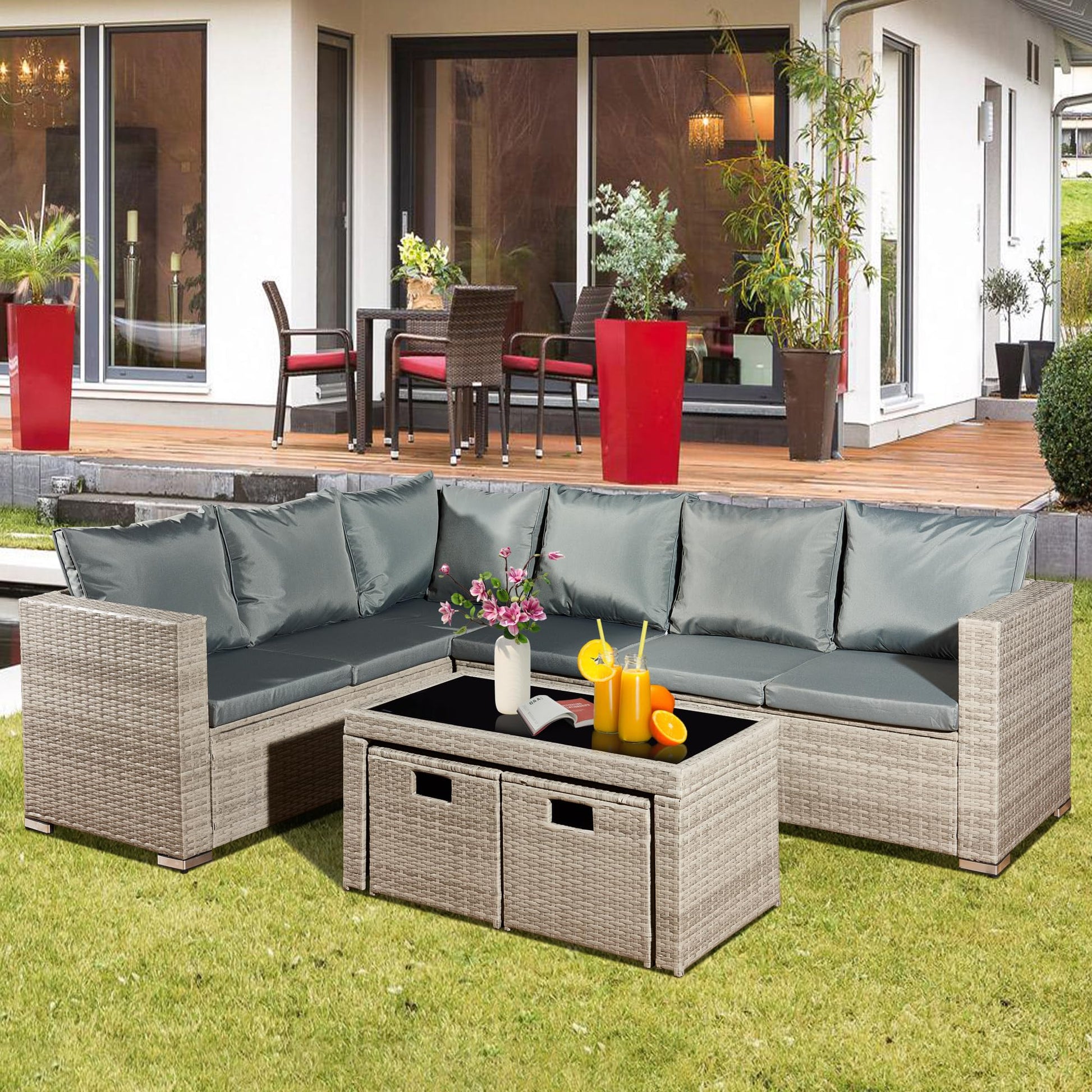 - VERSATILE SET: Corner configuration allows flexible arrangement to suit different outdoor spaces and seating requirements