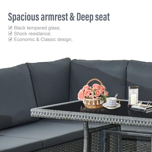Aweather 9 seater Rattan Corner Sofa Set Rattan Garden Furniture Set All-Weather Patio Conversation Set with Modern Dinning Table and Washable Cushions (Gray)