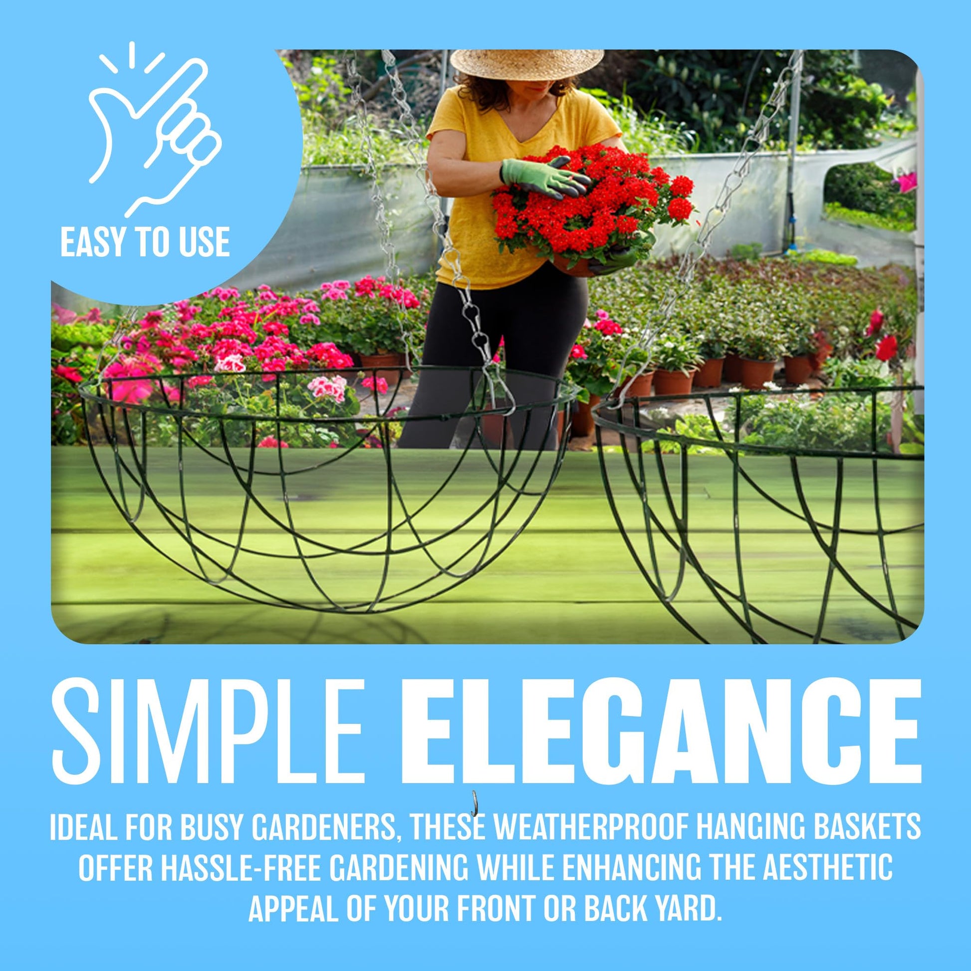 - ✔️ DECORATE YOUR HOME - Hanging baskets are an easy and cost-effective way to brighten your outdoors. They add a seasonal pop of colour that works well hung in your front garden to welcome guests, in your backyard and even from a suitable structure.