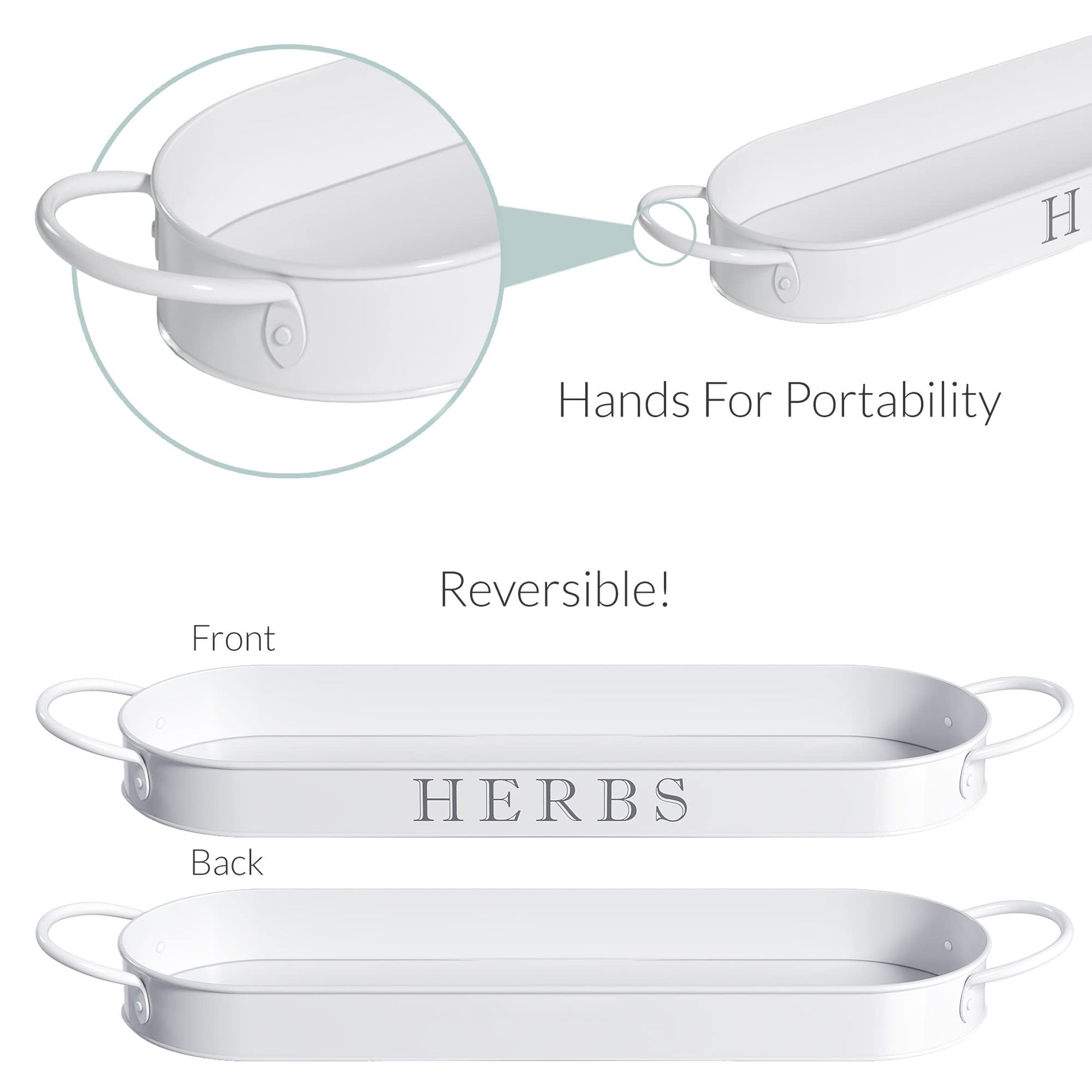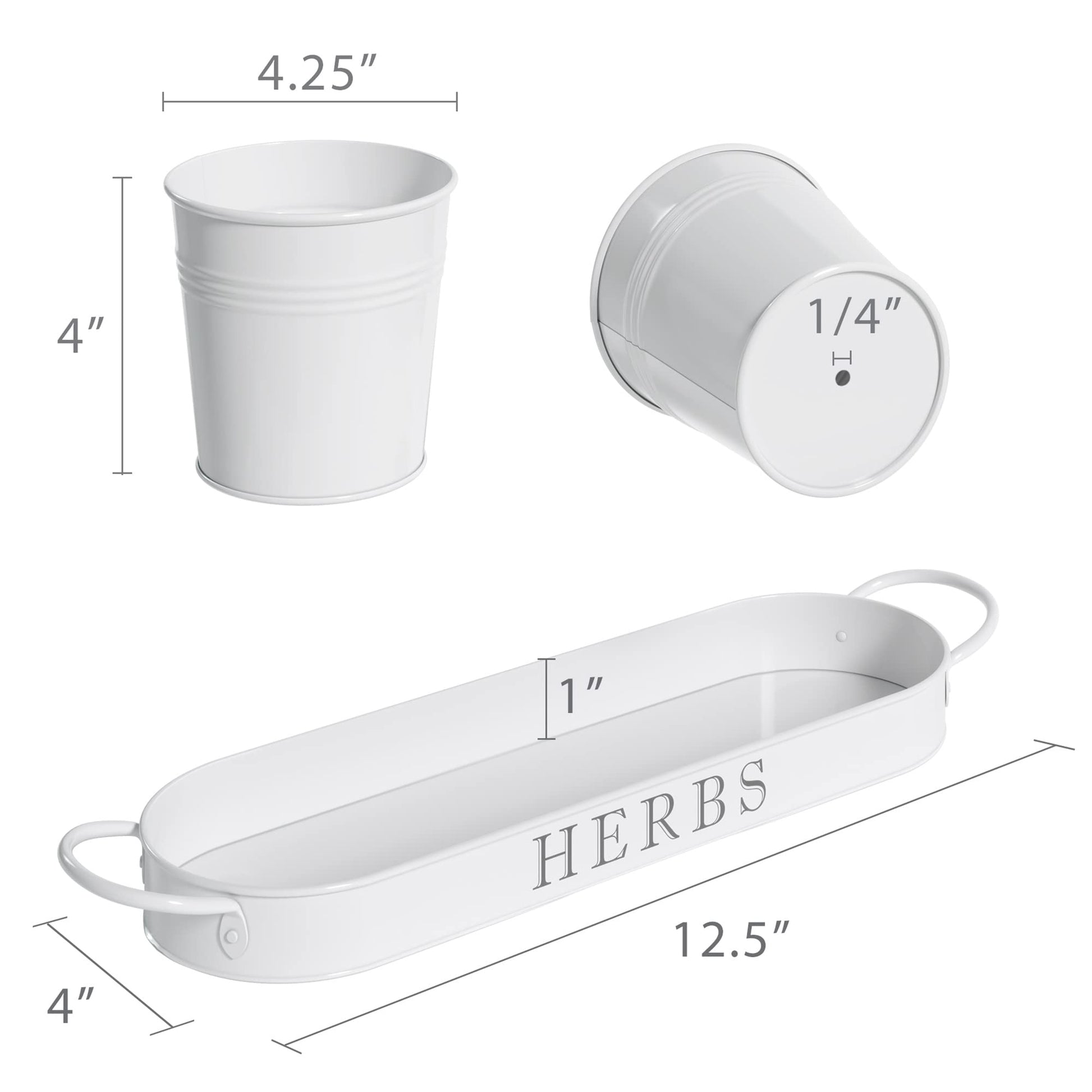 Barnyard Designs Herb Pot Planter Set with Tray for Indoor Garden or Outdoor Use, Decorative White Metal Succulent Potted Planters for Kitchen Windowsill