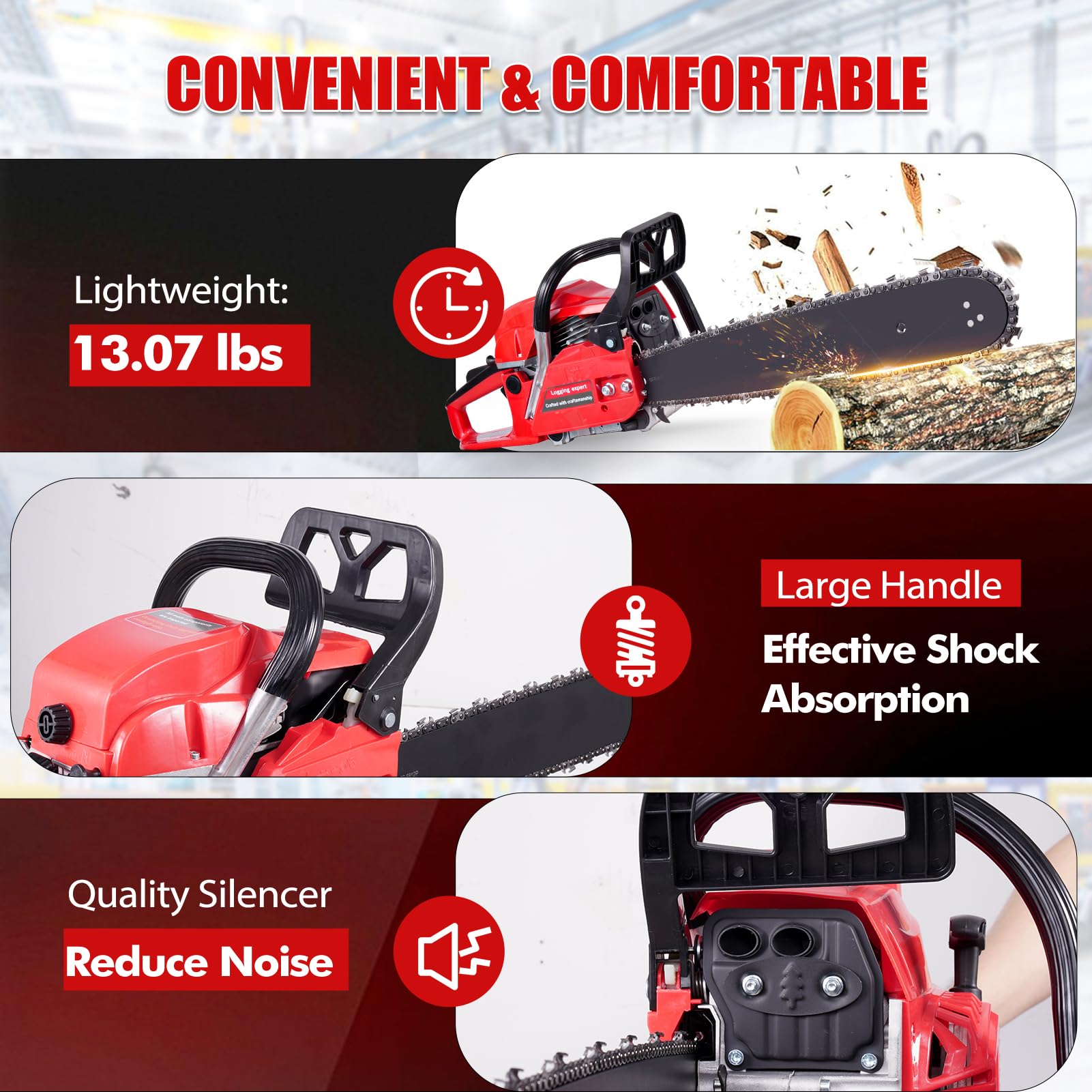 - 【Control Comfort】Protect your hands and arms with our anti-vibration technology. Designed for extended use, this feature ensures that your comfort won't interfere with your productivity. Focus on the task at hand without the fatigue of a traditional chain saw.