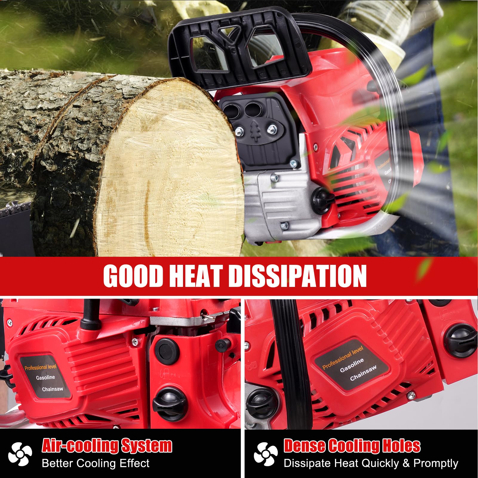 - 【Smooth Start, Safe Operation】Starting is a breeze with our easy start mechanism. A safety throttle lock switch ensures safe operation and prevents accidental starting. Coupled with the quick-stop control system, you can rely on our petrol chainsaw to be both safe and efficient in every cut.