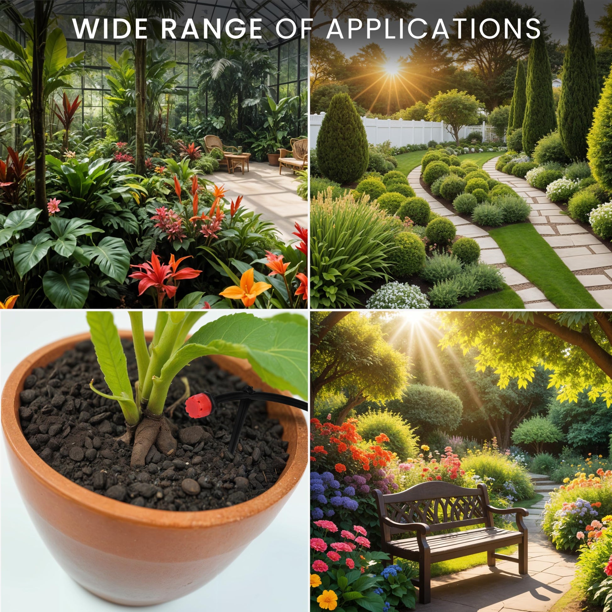 - VERSATILE IRRIGATION SET: Use this set to water your garden/lawn, tend to your vegetable garden/flower bed, for misting, roof cooling, swimming pools, atomisation, agriculture, greenhouse/patio watering, growing bonsais and more; The set is versatile and easy to use straight from your faucet