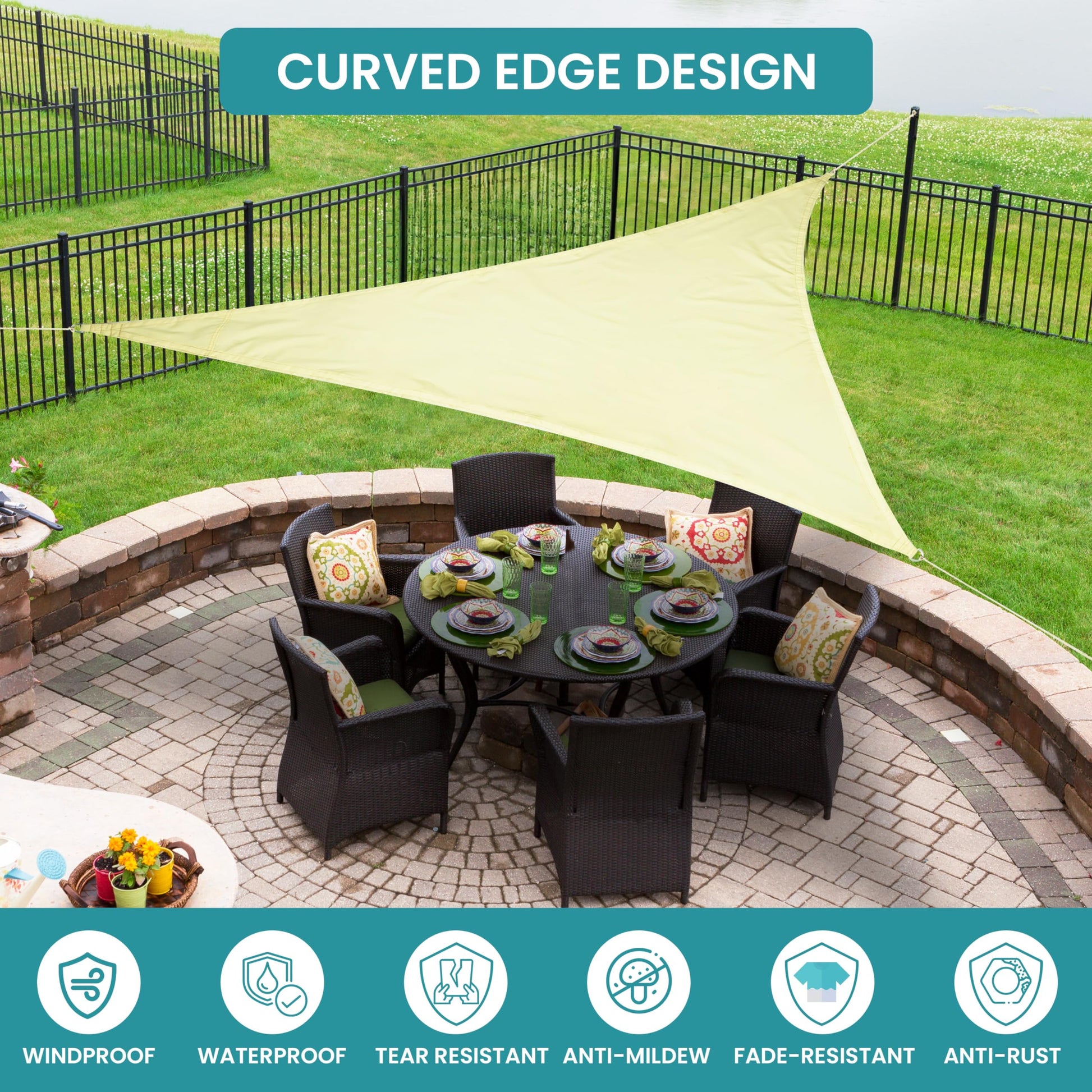 - QUICK INSTALLATION: With a D-ring hook at each corner, our shade is quick/easy to install; Our set includes durable mounting ropes, allowing you to hang it onto walls, posts, fences and trees; The shade has curved edges, pulling the sail tight when installed