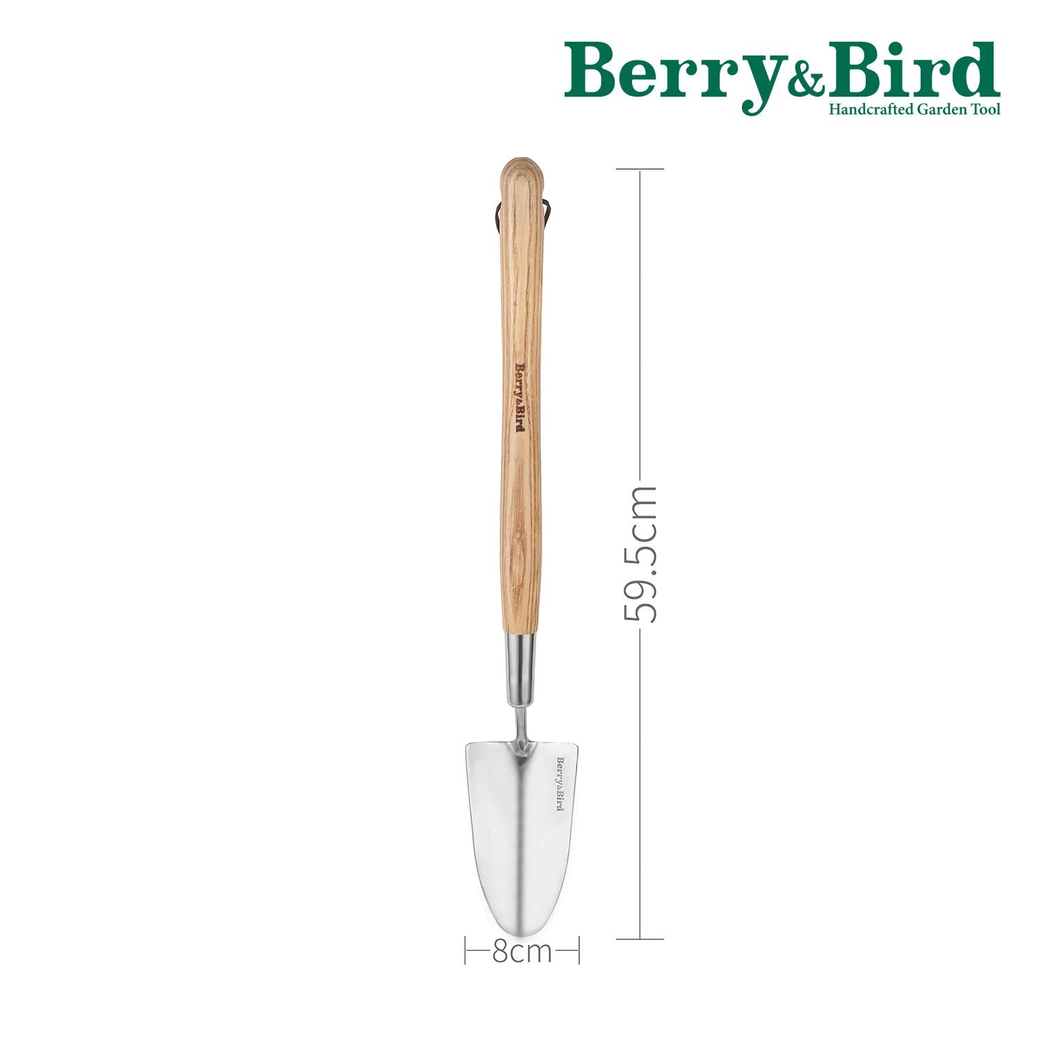 Berry&Bird Garden Trowel with Long Handle, 23.43in Stainless Steel Short Shovel with Wood Handled for Digging, Gardening, Transplanting, Planting and Weeding