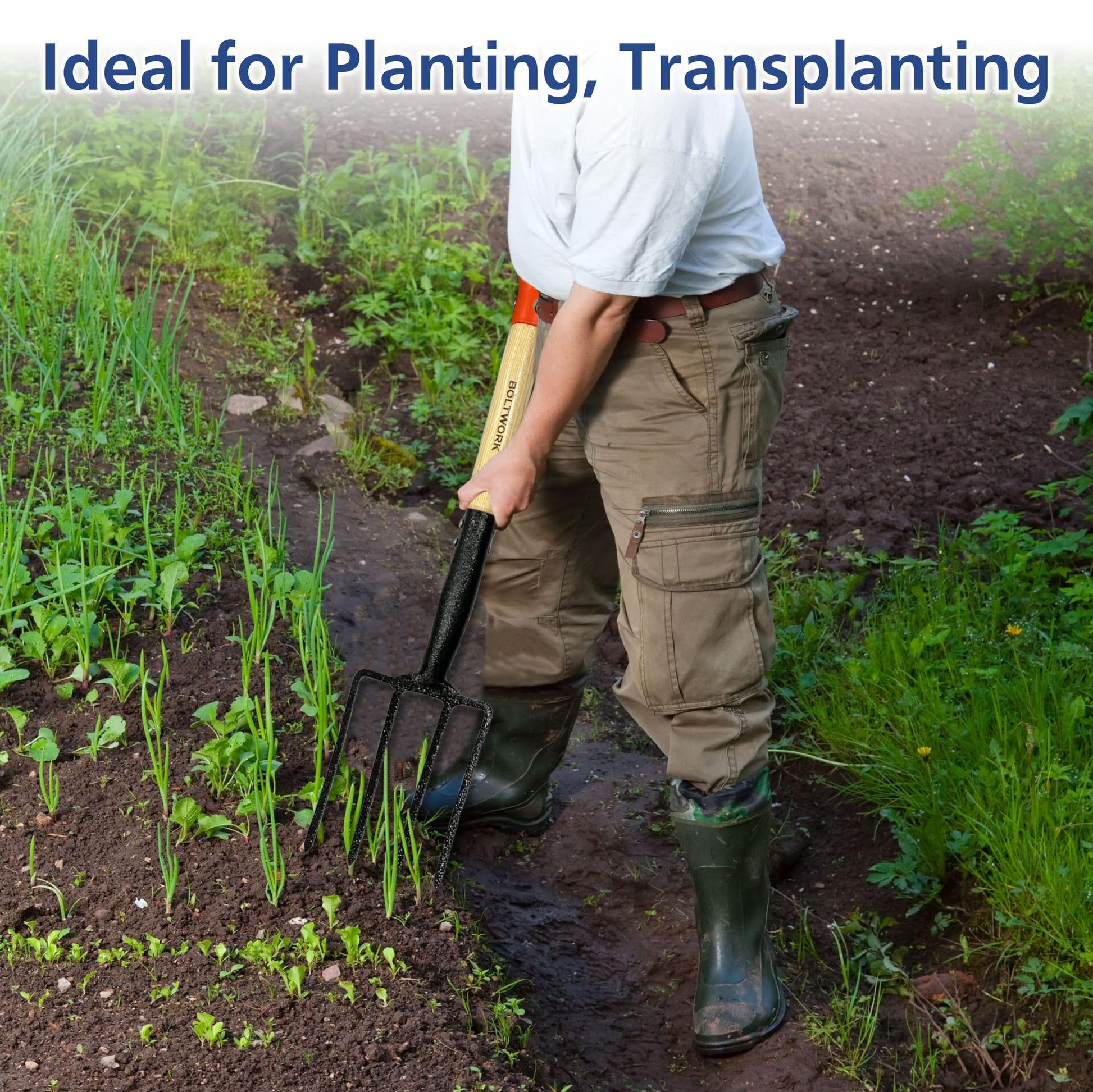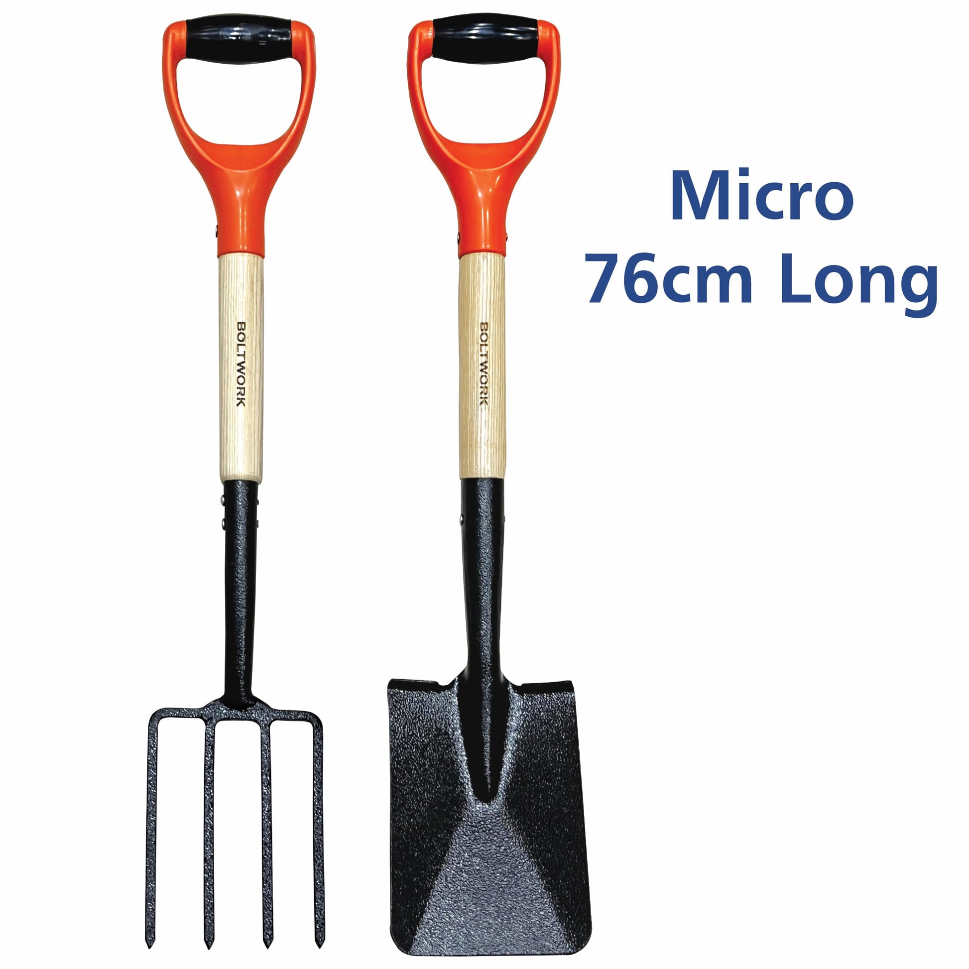BOLTWORK Shovel & Garden Fork Set Micro 76cm Long For Digging Soil Hardened Fork Heads Blades Wooden Shaft PVC Handle 1% Of Sale Value Will Be Donated To Children’s Hospital