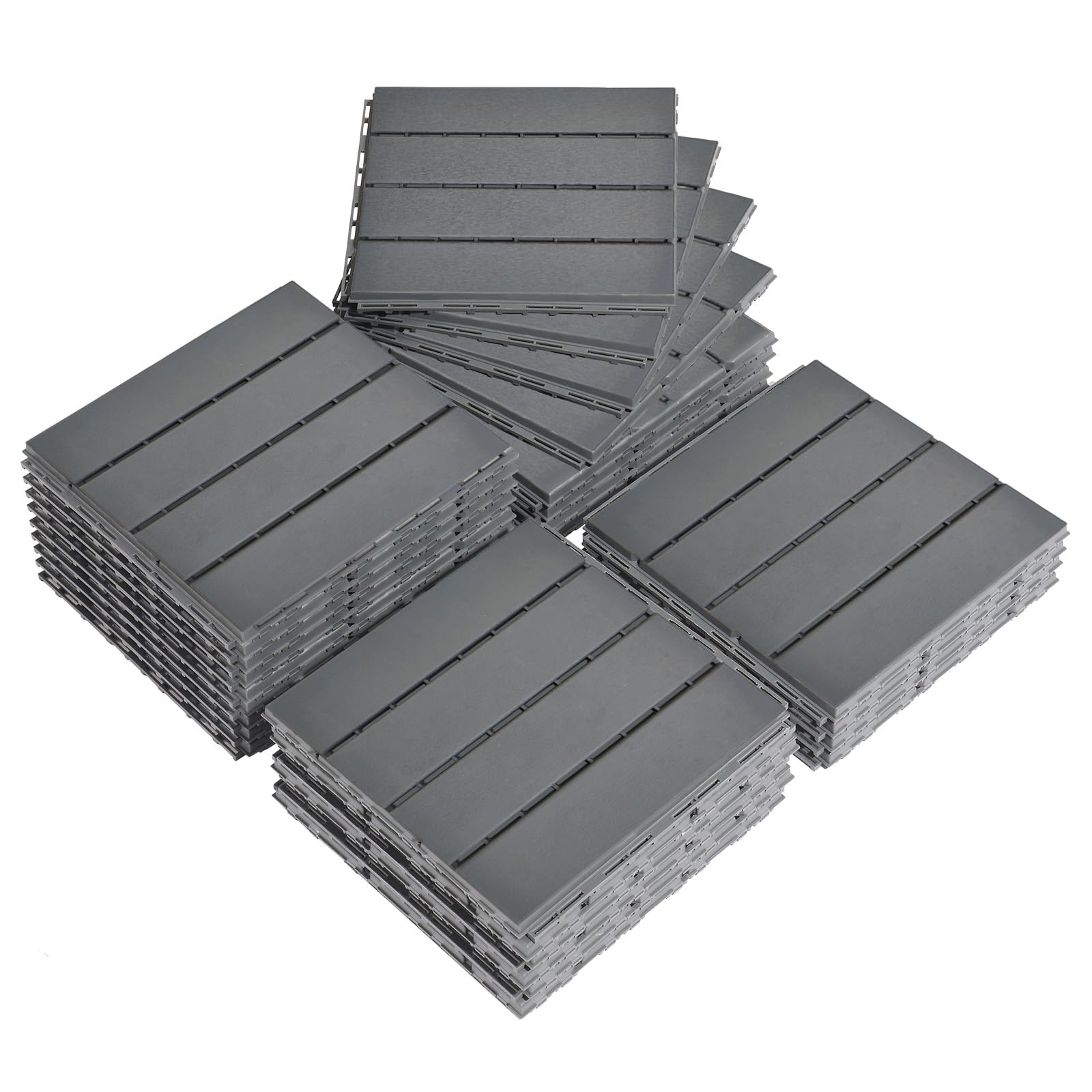 Bonnlo Composite Garden Decking Tiles, 27 Pcs Plastic Outdoor Flooring, 30x30cm Patio Paving Slabs Decking Squares Indoor & Outdoor Grey (Dark Grey)