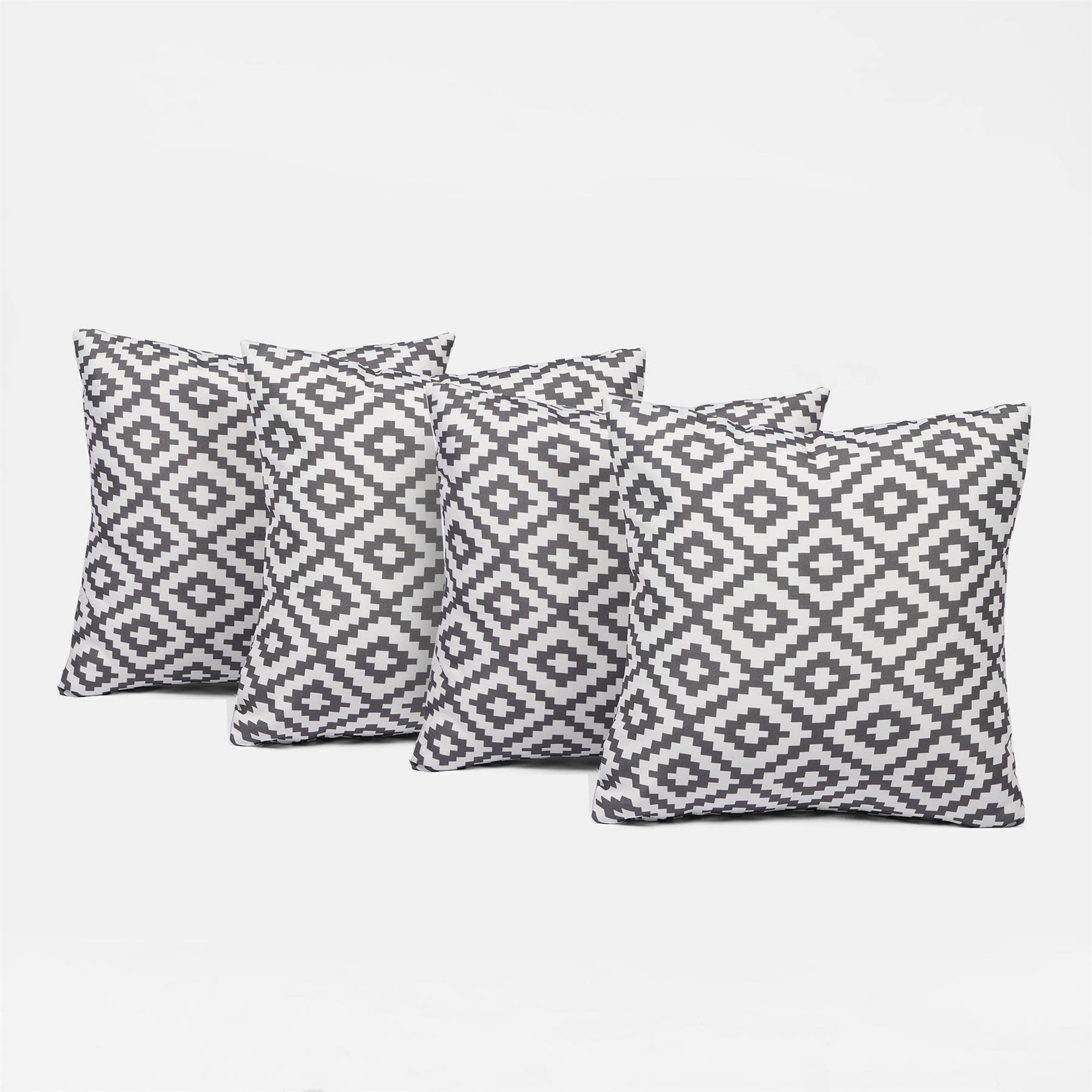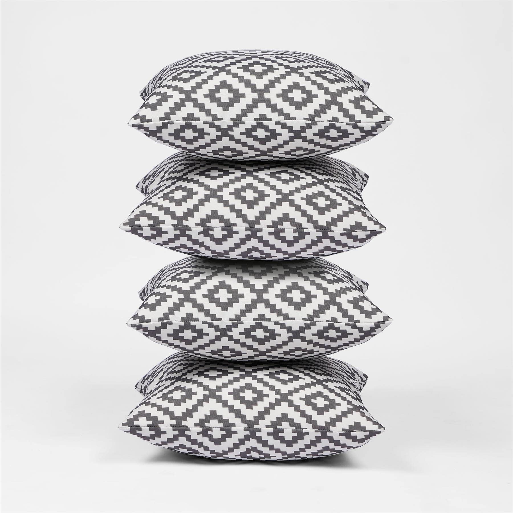 Brentfords 4 Pack of Geometric Outdoor Cushions Cushion Covers Water Resistant Home Geo Grey Decorative Seat Pads Garden Patio Pillow, 45 x 45cm