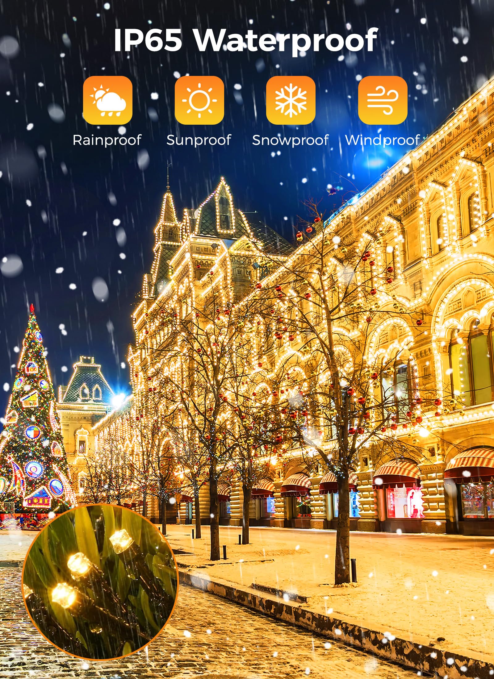 - 【 IP65 Waterproof Outdoor Solar String Lights】: The outdoor solar lights have IP65 waterproof performance, which meets your requirements for both indoor and outdoor use and can easily cope with all kinds of harsh outdoor weather.