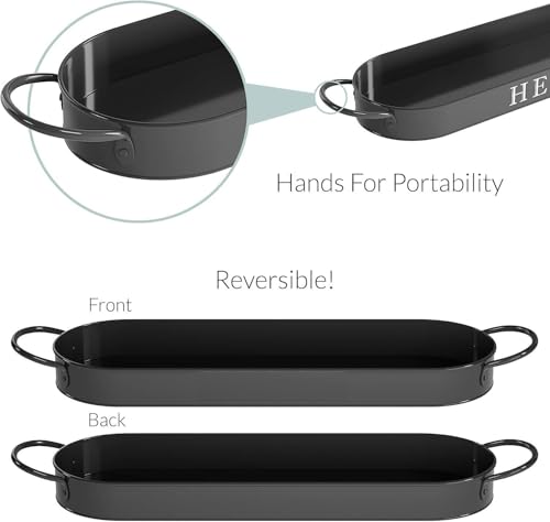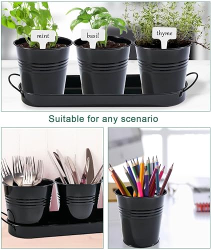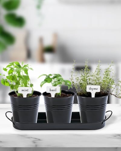 BSTMOME Herb Pot Planter Set with Tray for Indoor Garden Outdoor Use, Decorative Metal Succulent Pots Windowsill Planter Pots Flower Pots for Kitchen Grow (Black)