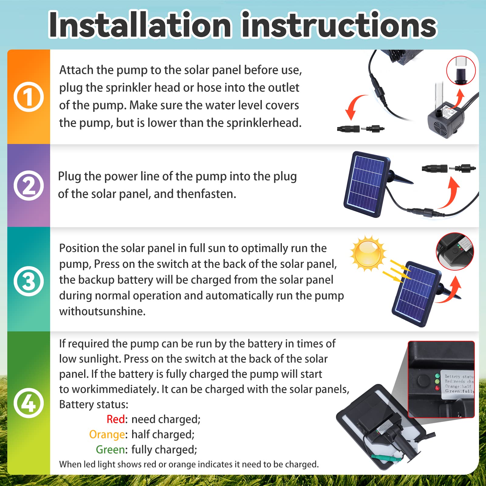 3. It is important to ensure that the switch located behind the solar panel is always "On" during use, otherwise the pump will not work properly (either in normal operation or charging).