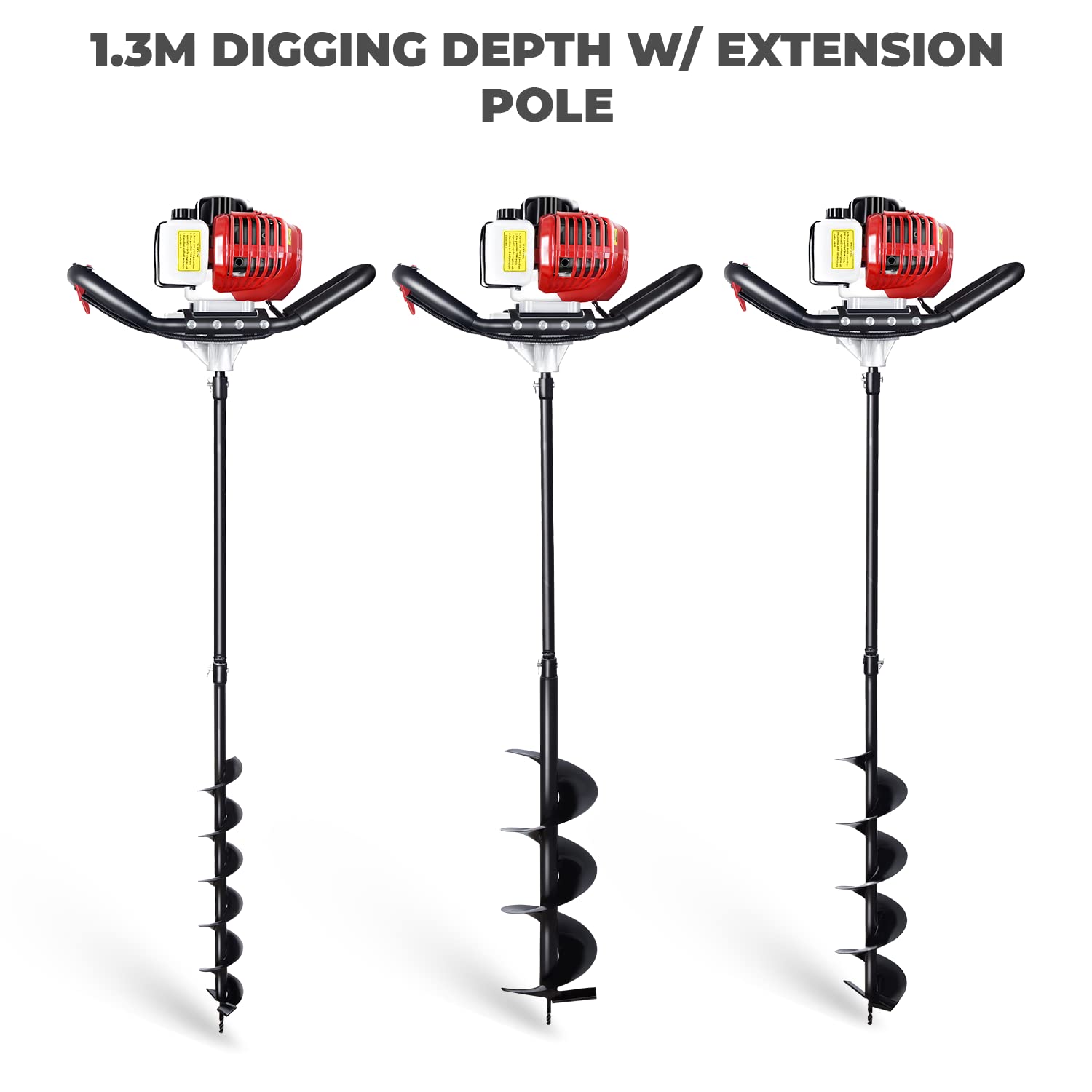 - ✅【POWERFUL】52cc petrol earth auger with 1.2 litre tank capacity. 3HP, 9000 RPM for maximum power. Using 2 Stroke Oil Mix - 25/1 - this will extend the life of the engine, low emissions and reliable running in all weathers.