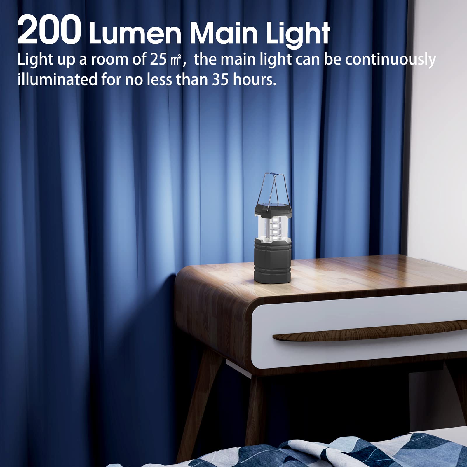 - Superb Battery Capacity--Having this solar camping light means that you get a 3000mAh power bank in the meantime, provide you with super long run time up to 35 hours, this extraordinary rechargeable lantern can also charge your phone to let it back up and running again, accompany you during the dark time.