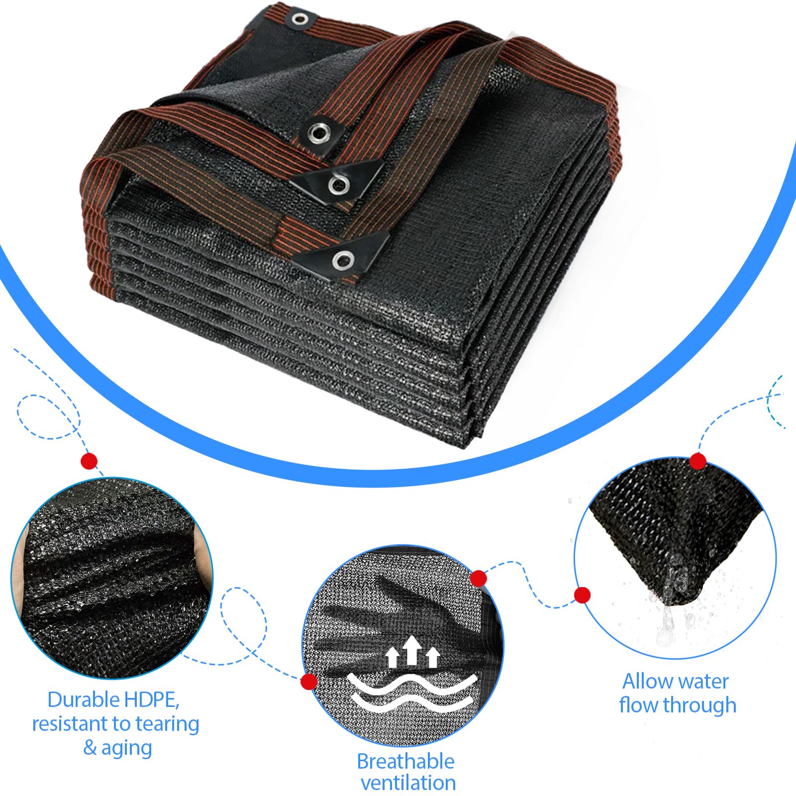 - 【Breathable & Durable】This shade sail is made of high-density polyethylene (HDEP), which is environmentally friendly, breathable, anti-ageing, anti-ultraviolet. The black sun shade sail cover effectively blocks hard sun rays and keeps cool.
