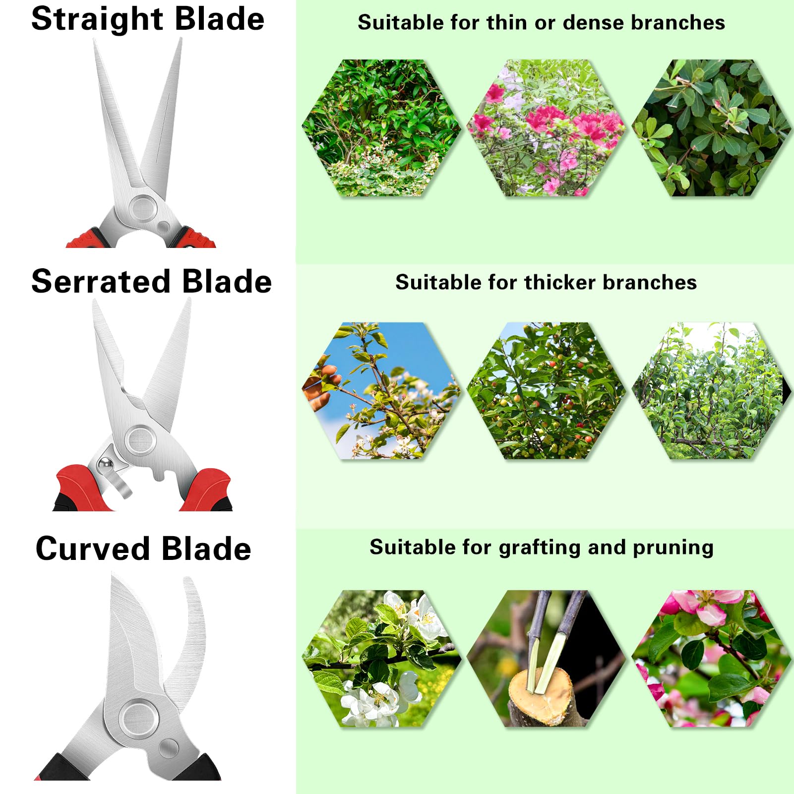 - SECURE EASY TO OPERATE LOCK - Our pruning shears set feature a safe and secure sideways locking mechanism that keeps your blades protected and closed when not in use. The design of these pruning snips are perfect to use whether you are right or left handed with ease.