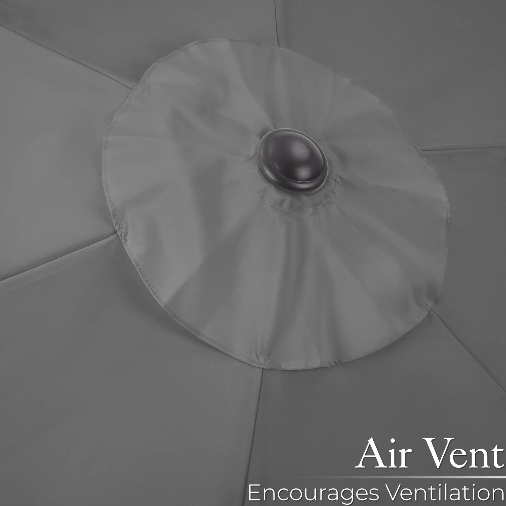 - AIR VENT TO MAXIMISE AIR FLOW: The canopy is made from 180g polyester for enhanced strength and durability. It has an air vent at the top to reduce wind pressure and prevent the wind pulling the parasol upwards. The vent also aids air flow to reduce the temperature beneath the canopy. This helps to keep you nice and cool when you’re chilling underneath it.