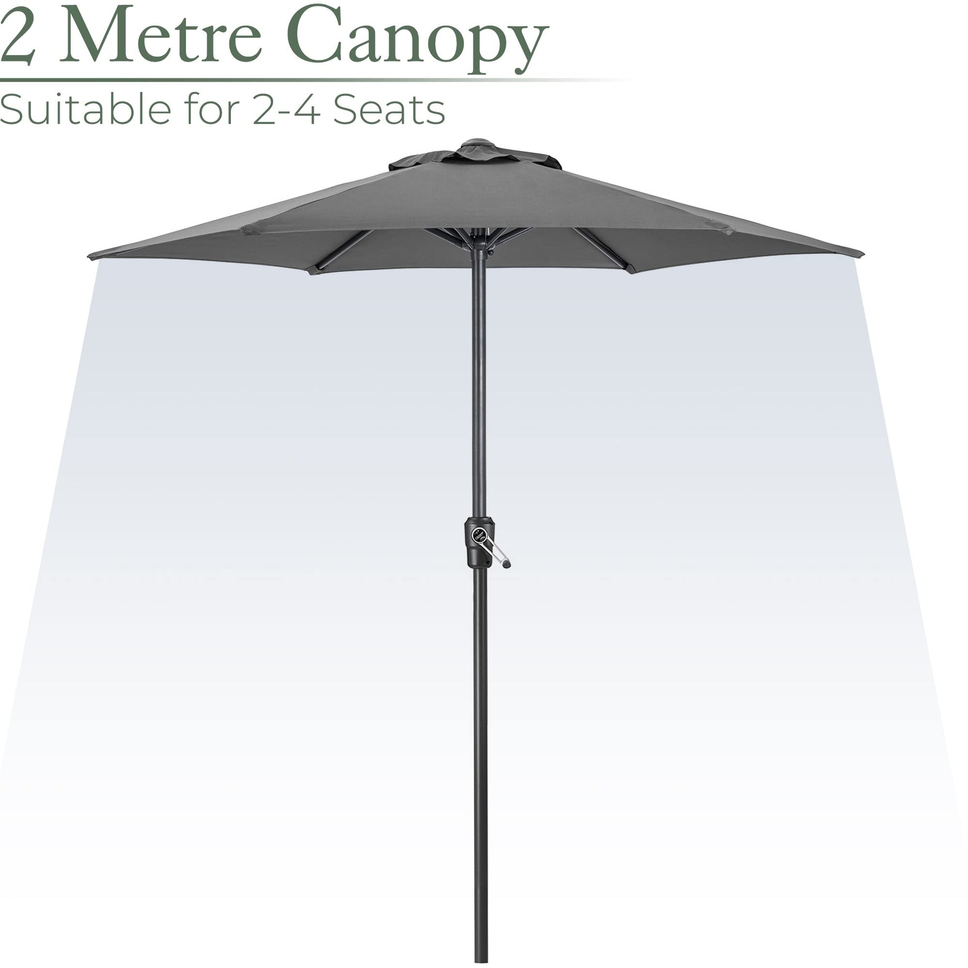 - CHRISTOW GREY 2M PARASOL: Shade yourself in style when you're relaxing in your garden with this Christow 2m Parasol with Crank. Designed with a grey-coloured 2-metre canopy, it's a stylish choice for smaller garden, patio, and decking spaces. The parasol measures 2.2-metres tall (approx.) from the bottom of the pole to the top of the canopy.