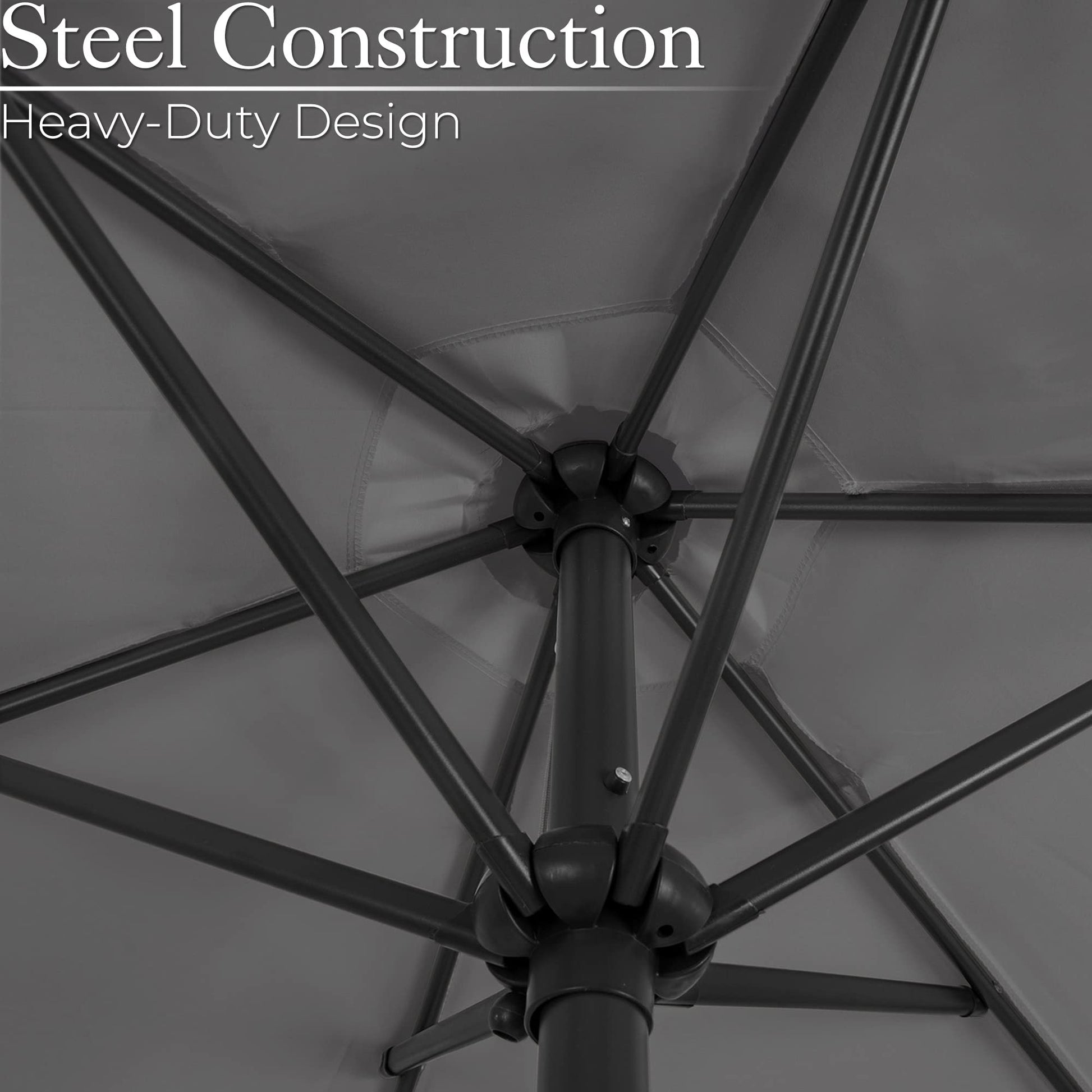- CRANK HANDLE TO EASILY OPEN & CLOSE: Forget about wrestling with a fiddly pulley system because the parasol has a crank handle to easily raise and lower the canopy. Simply turn the handle one way to open the canopy and turn it the other way to close it. The handle is made from powder-coated steel for a stylish, premium look and a high-quality feel.