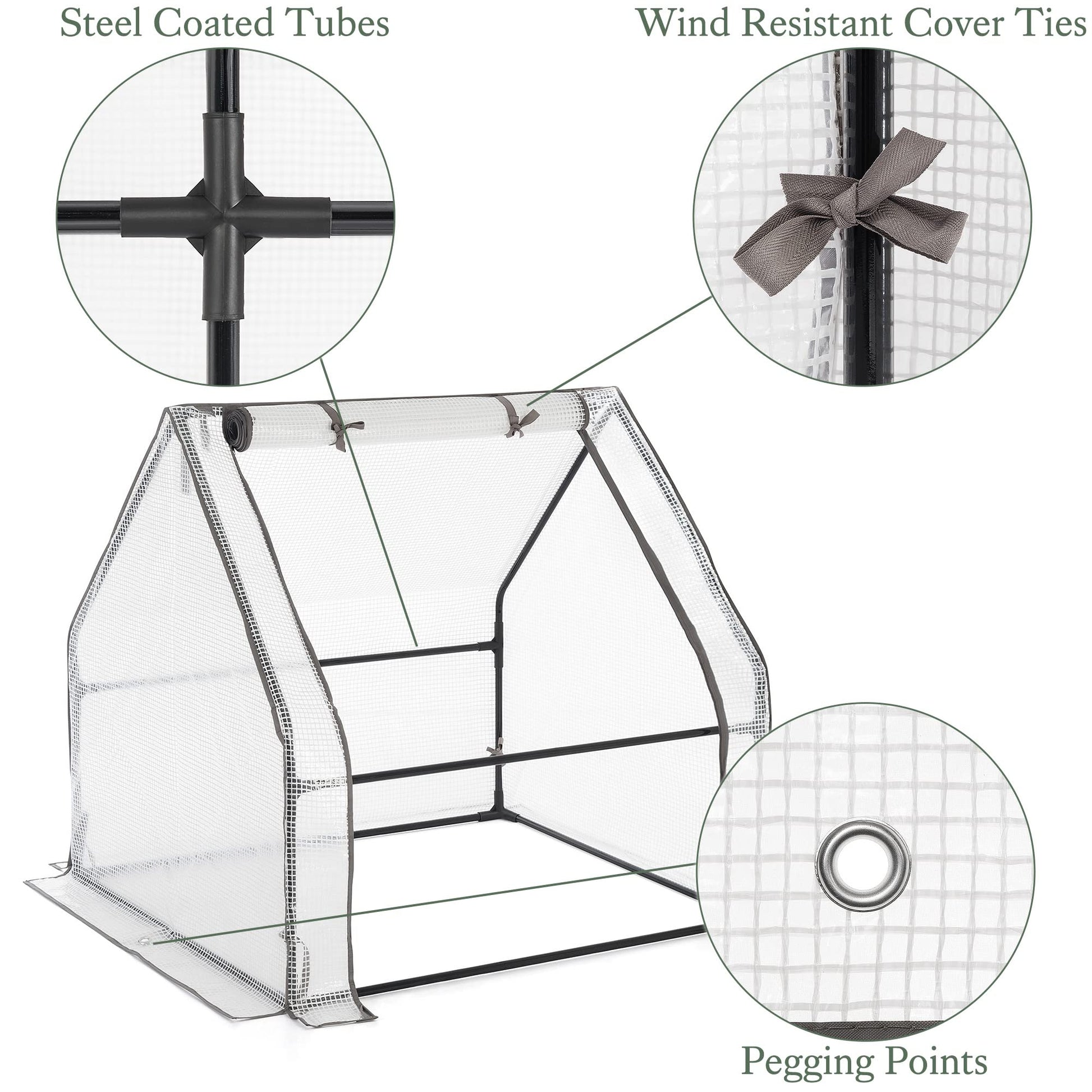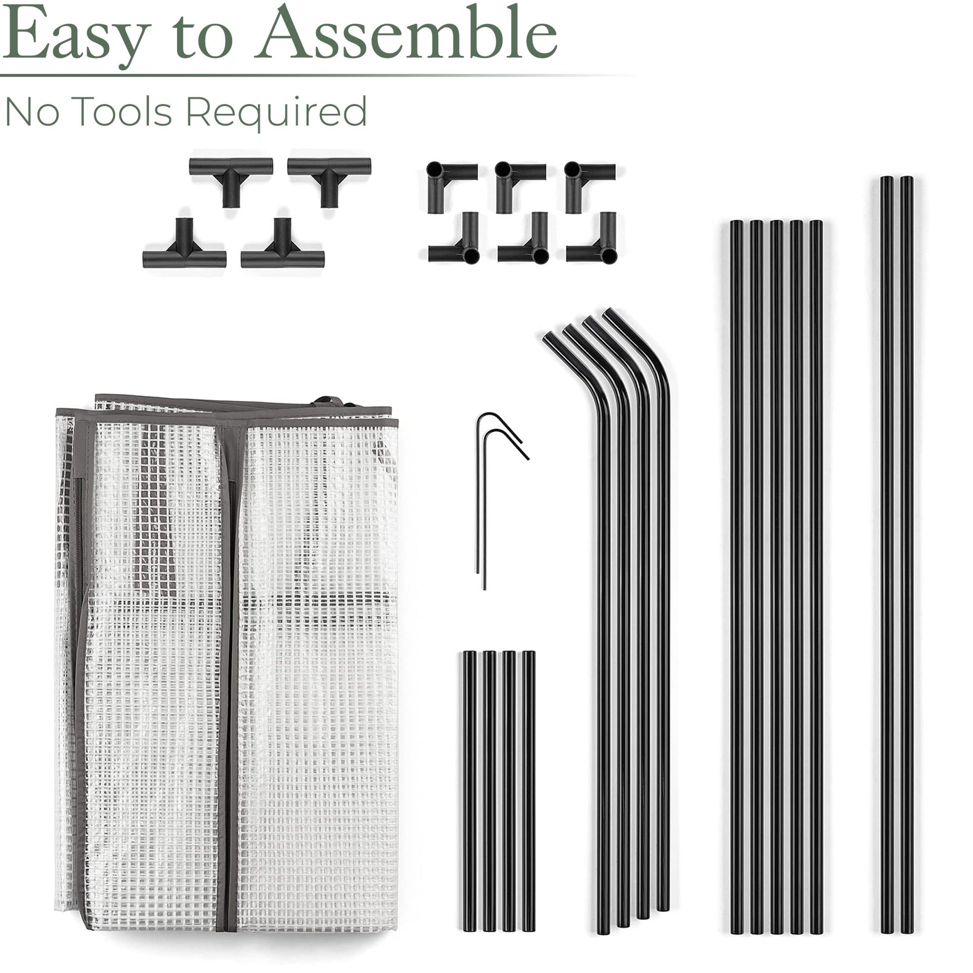 - CLICK-TOGETHER FRAME FOR EASY ASSEMBLY: No tools are required to build the growhouse. Its frame consists of steel poles and plastic connectors which seamlessly slot together. Simply place the cover over the top, tie it to the frame, and secure the peg points to a lawn or bed using the pegs included. The poles are powder-coated for rust-resistance.