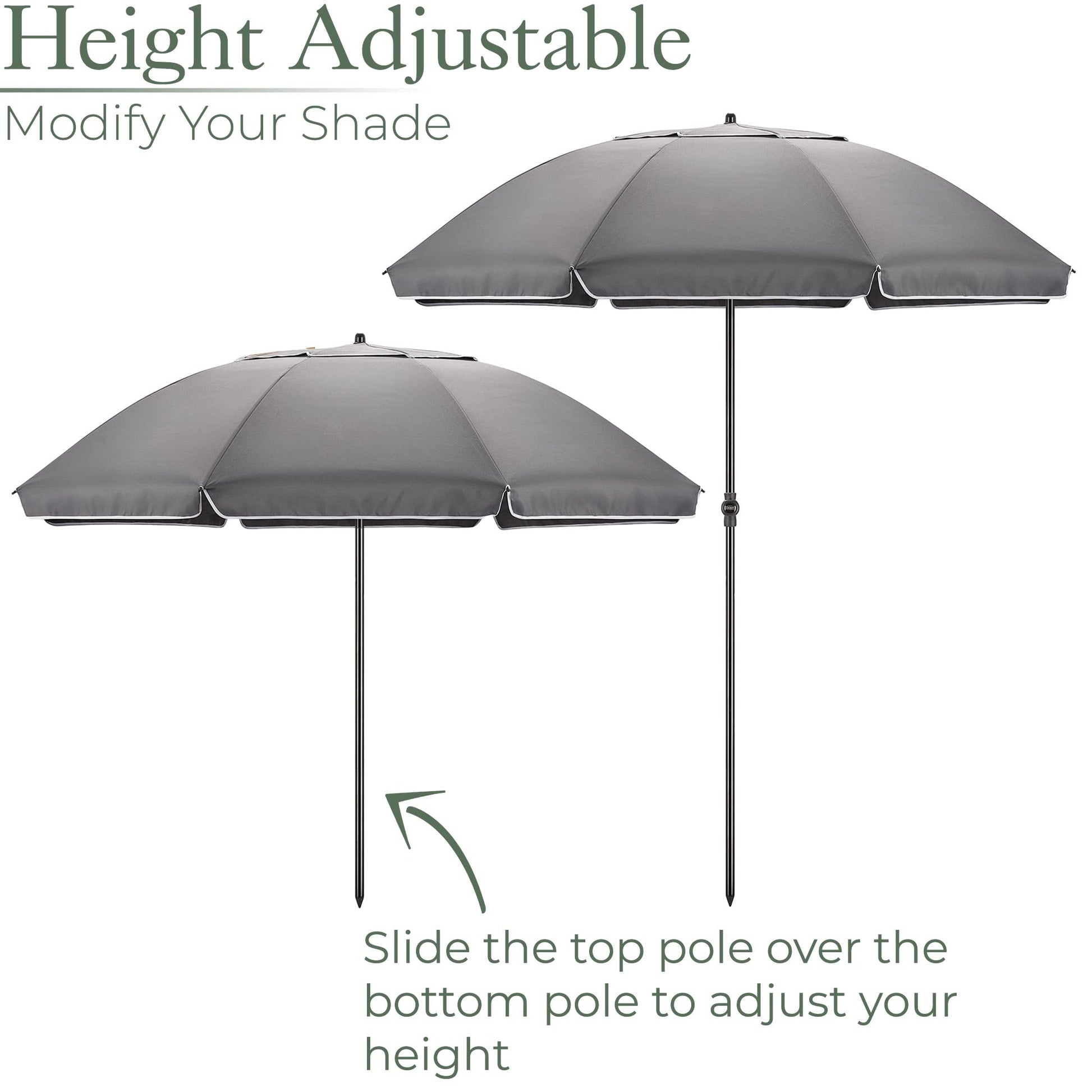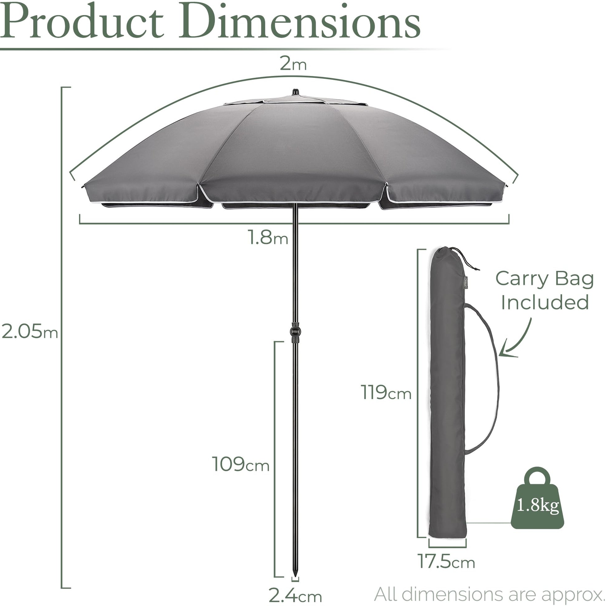 CHRISTOW Portable Beach Parasol Tilting Garden Sunshade Umbrella UV Resistant 2m (Grey)