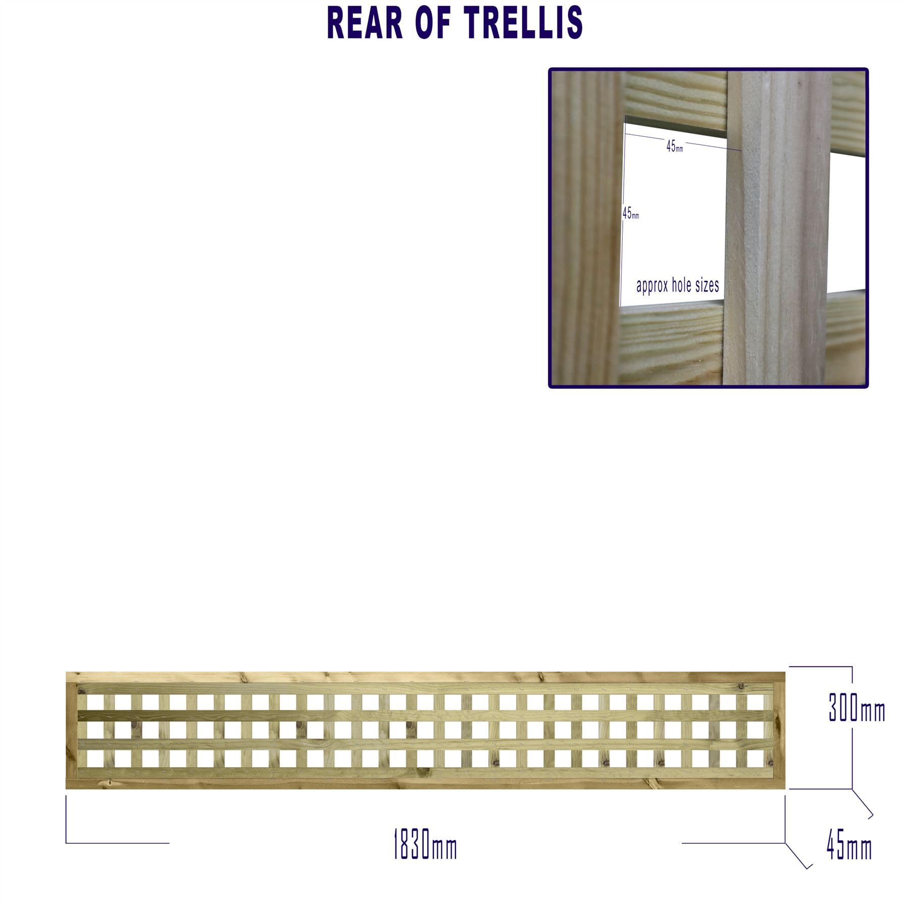 - Chunky Framed Trellis with a 45mm depth frame, making this perfect for slotted wooden or concrete posts and an excellent fence panel topper. The product width is 6ft (183cm) and has a height of 1ft (30cm).. We use thicker laths to craft approximate 45mm square shaped holes. The Premier Garden Supplies URBAN Trellis Range offers you a chunkier trellis built to last. We use Smooth-Planed 30mm x 12mm Laths stapled into position to give you approximate 45mm x 45mm Square holes.
