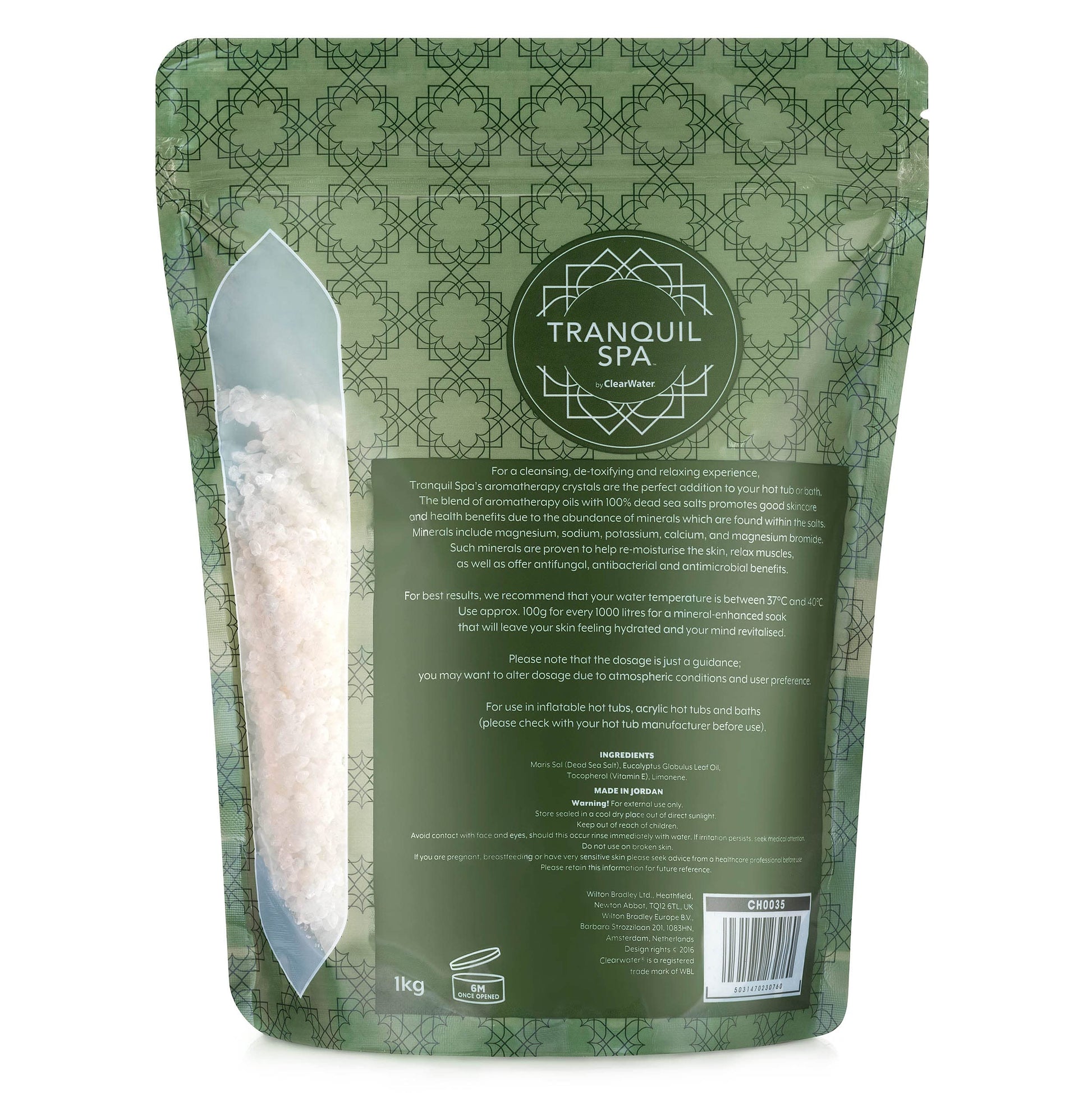 Clearwater Tranquil Spa 100% Dead Sea Salt 1KG, Bath and Hot Tub Salts, Hot Tub Fragrance, Natural Minerals, Re-Energising Eucalyptus