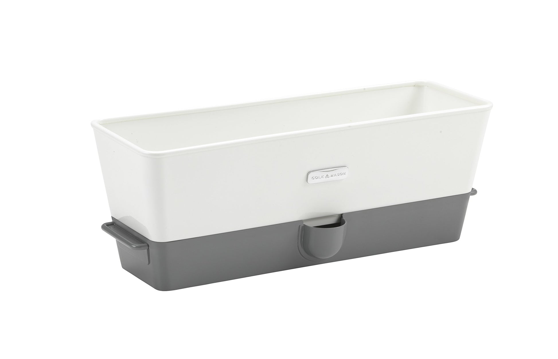 Cole & Mason Burwell Self-Watering Potted Herb Saver, Windowsill Herb Planter Herb Box/Indoor Herb Garden, Triple, Suitable for 3 pots (85 mm), Includes 12 x Pads, White/Grey